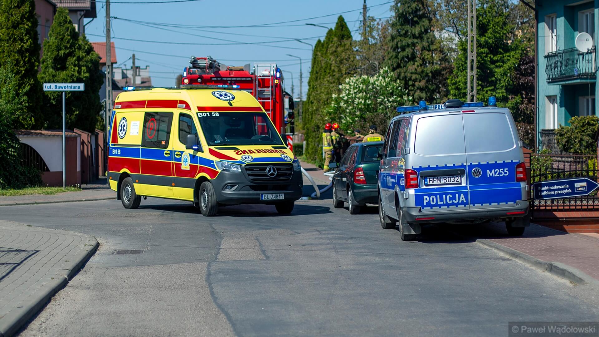 Razem z 79-letnim mężczyzną była w domu także jego 2 lata młodsza żona, kobiecie nic się nie stało. Na miejscu cały czas pracują 4 zastępy straży pożarnej, jest też karetka pogotowia i policja.