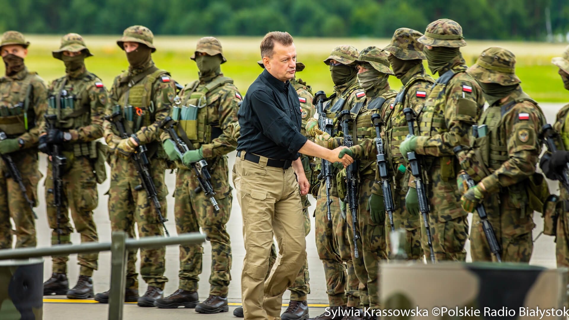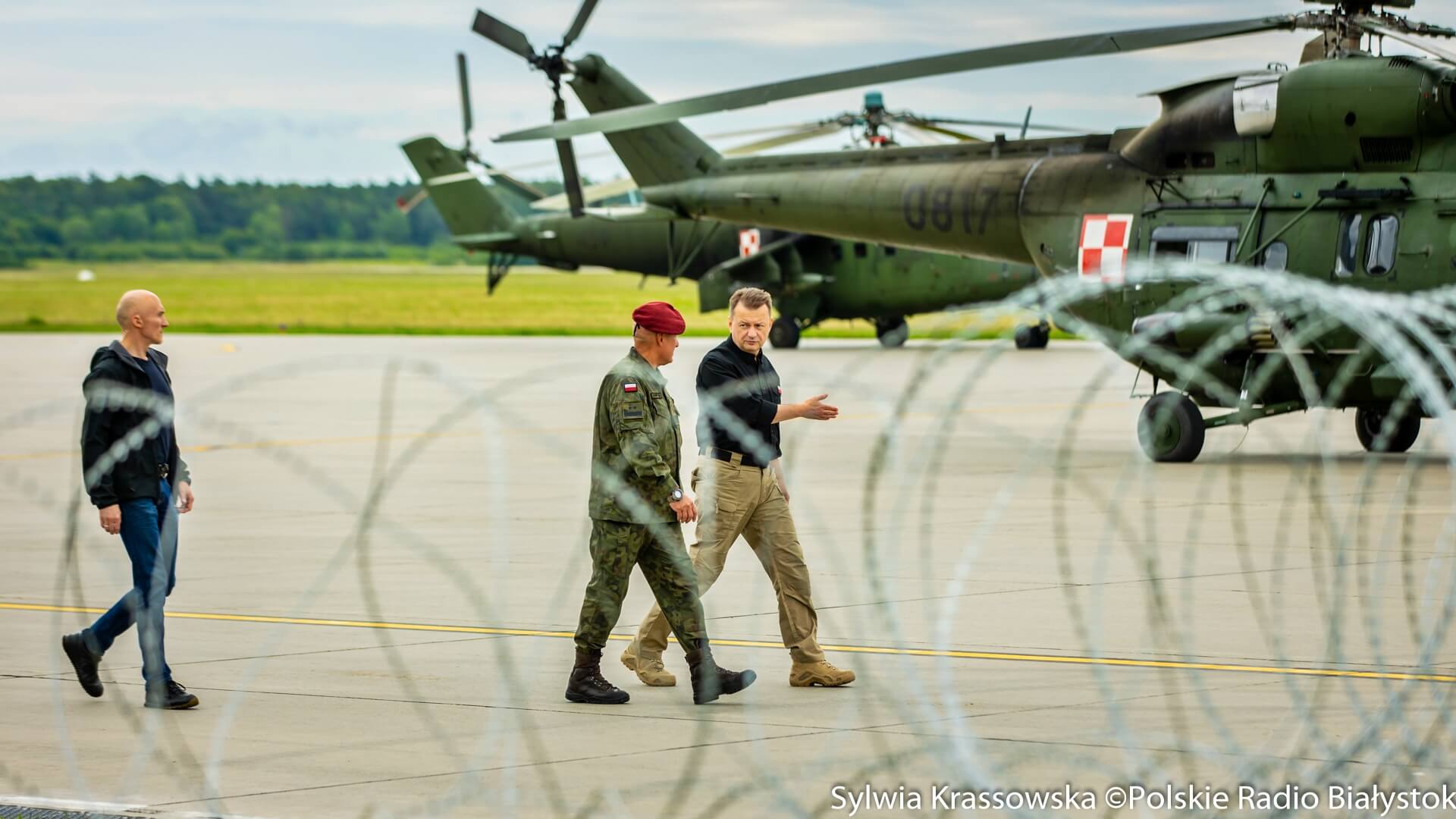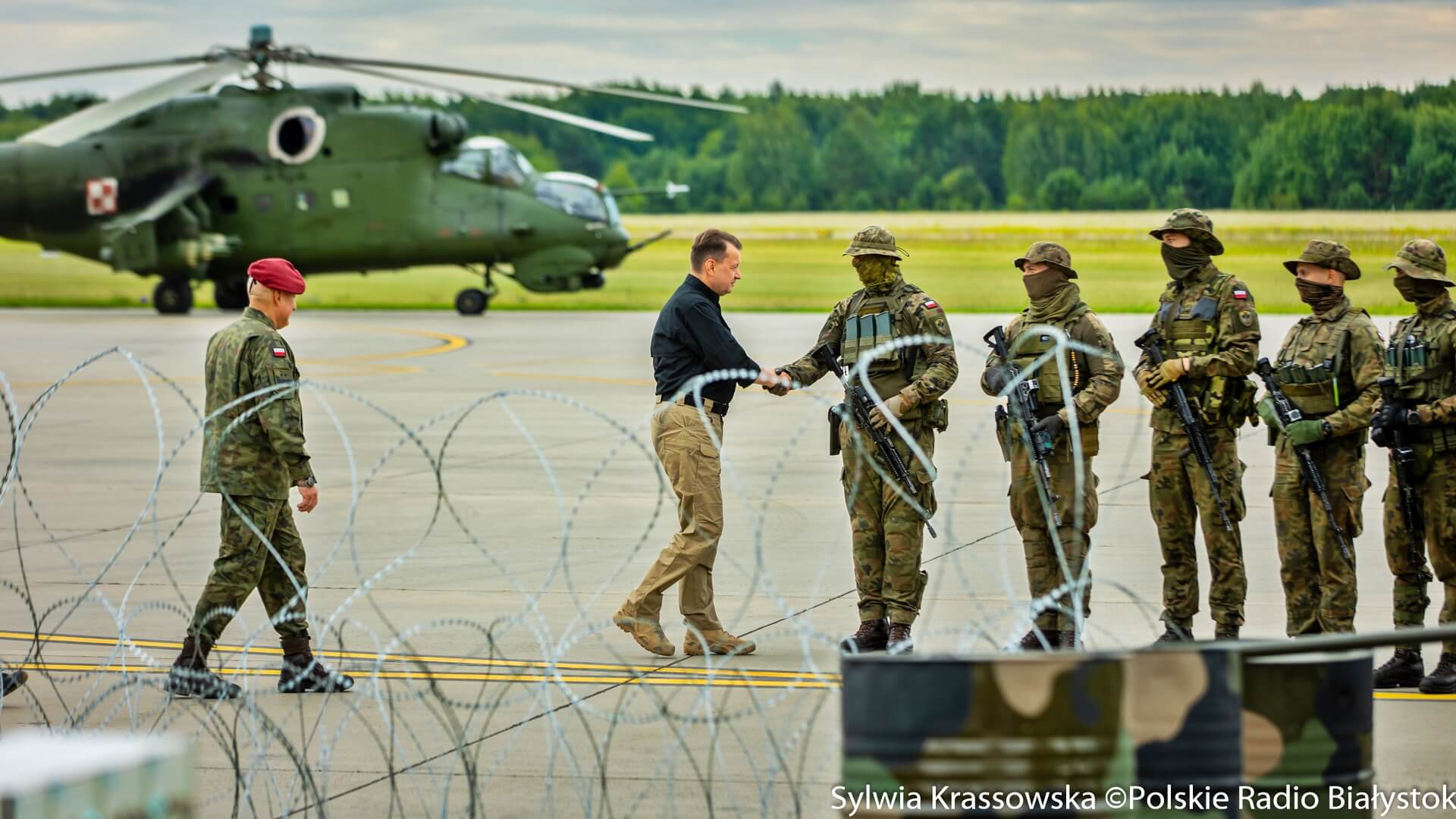 Na białostockim lotnisku Krywlany szef MON wziął udział w odprawie dotyczącej zwiększenia liczby żołnierzy Wojska Polskiego na granicy z Białorusią oraz wydzielenia dodatkowych sił i środków dla ochrony tej granicy. Odprawa dotyczyła m.in. użycia śmigłowców bojowych.