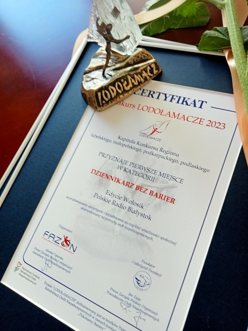 Radio Białystok | Wiadomości | Wiadomości - Nasza dziennikarka Edyta Wołosik zajęła pierwsze miejsce w konkursie Lodołamacze 2023 w kategorii Dziennikarz bez Barier