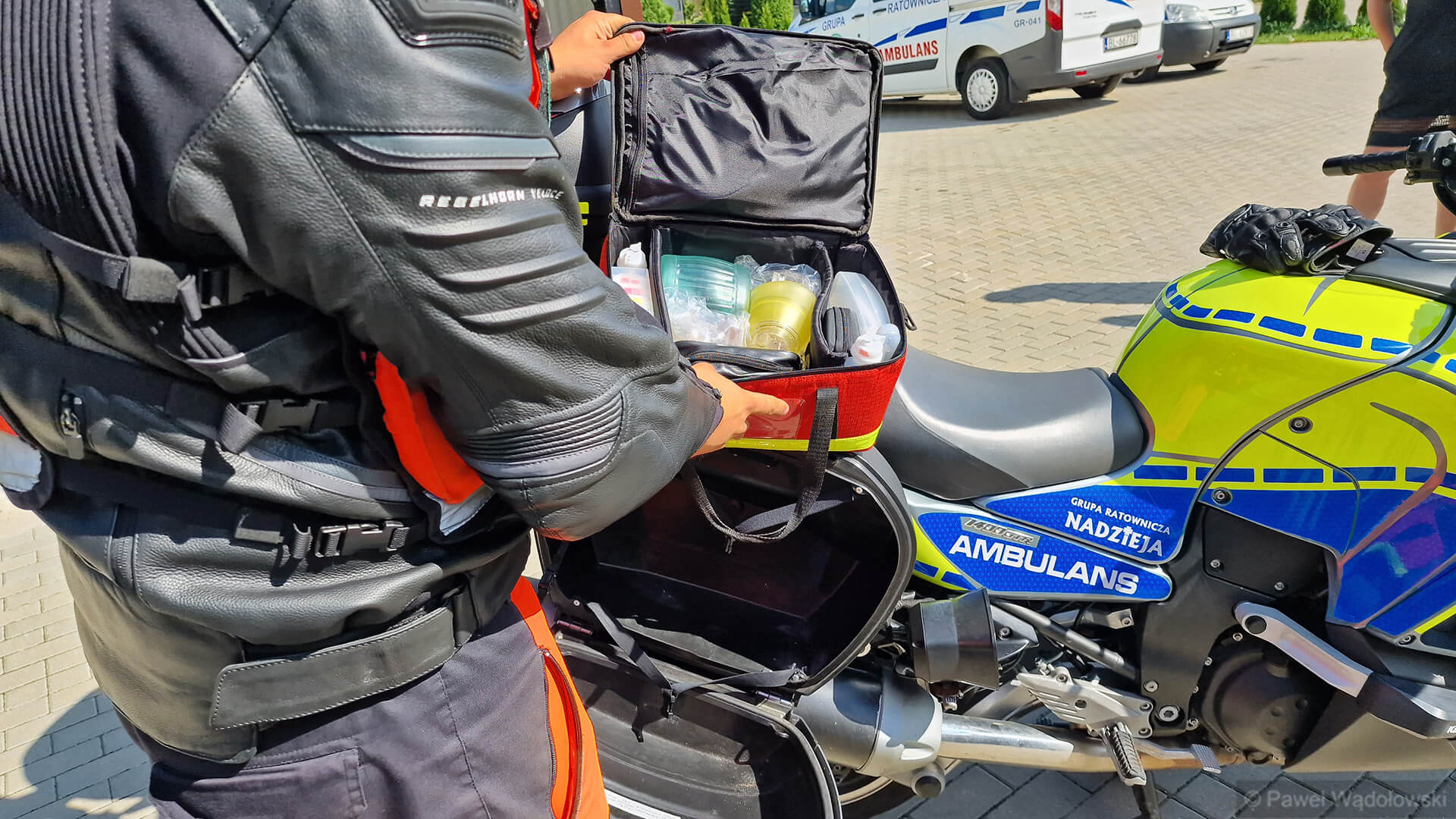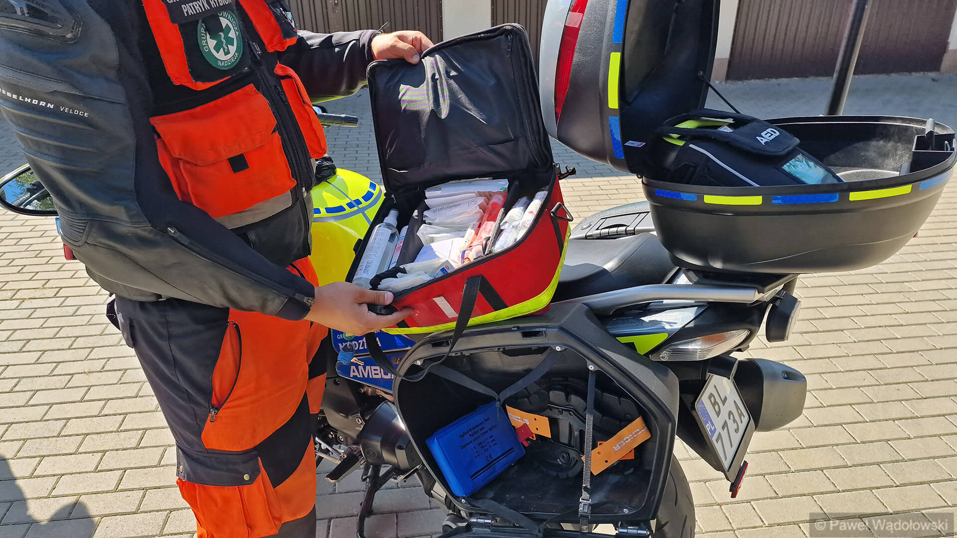 Prędkość możemy osiągnąć na nim bardzo dużą, w naszym mieście tworzą się coraz większe korki, a motocyklem te korki szybciej i łatwiej można ominąć. Najczęściej motocykl działa w duecie z tradycyjnym ambulansem. Możemy dotrzeć na miejsce wiele szybciej, zacząć działania, zabezpieczyć pacjenta i czekać na przyjazd samochodu. I pacjent do szpitala już może trafić tradycyjnym ambulansem - mówi Patryk Rybicki.