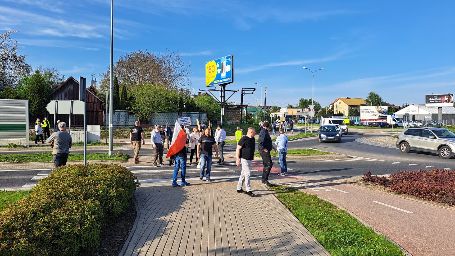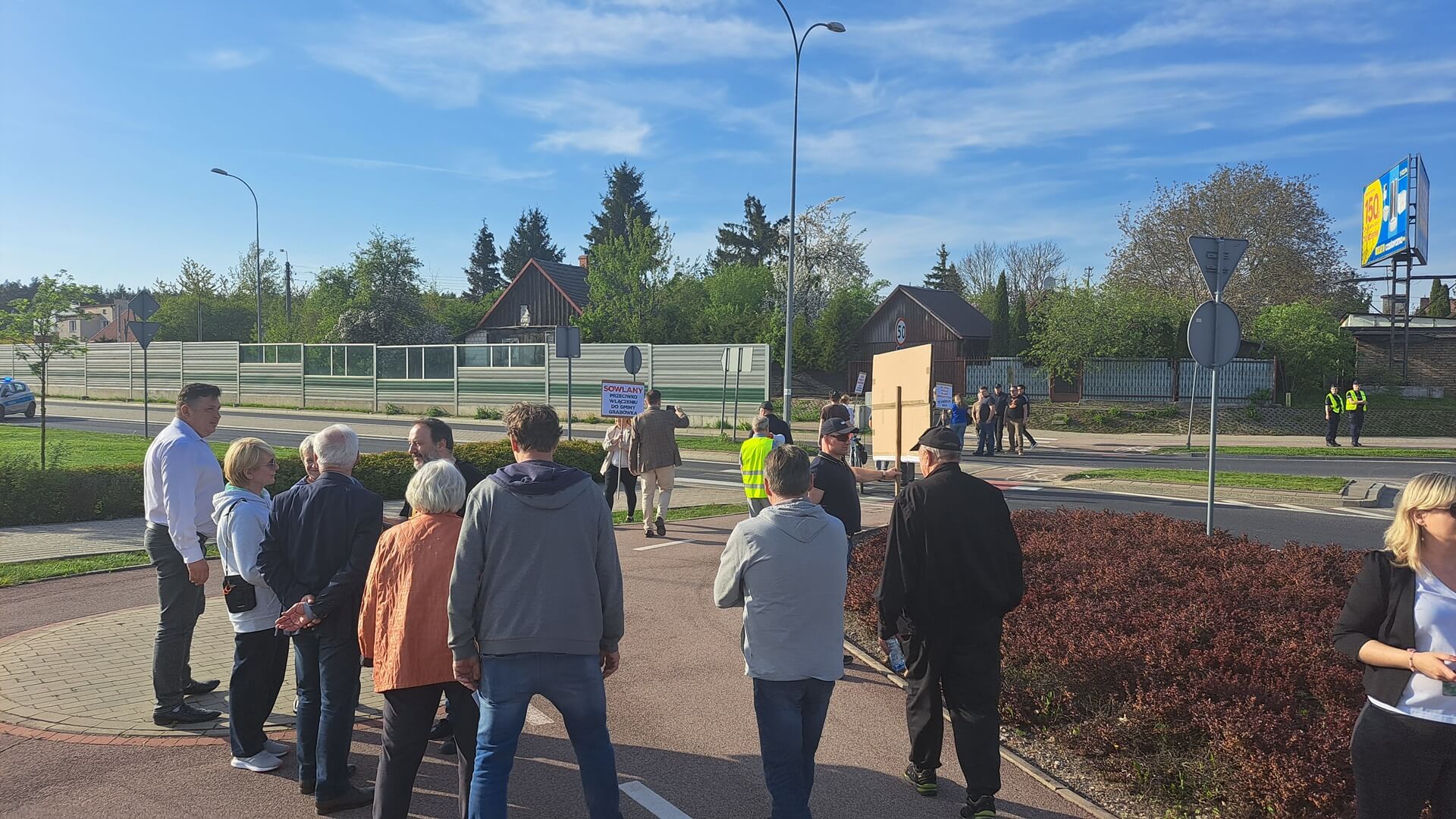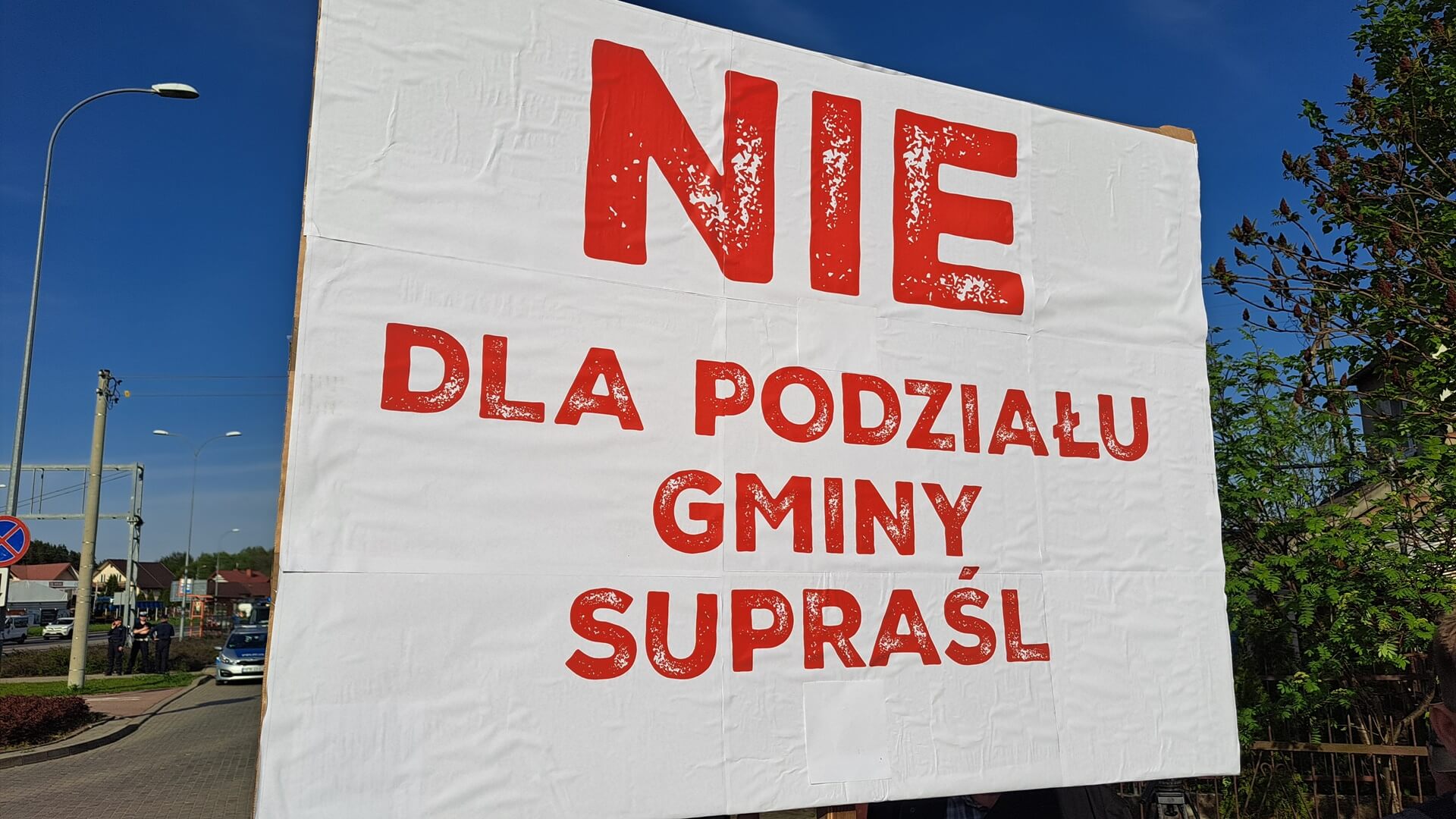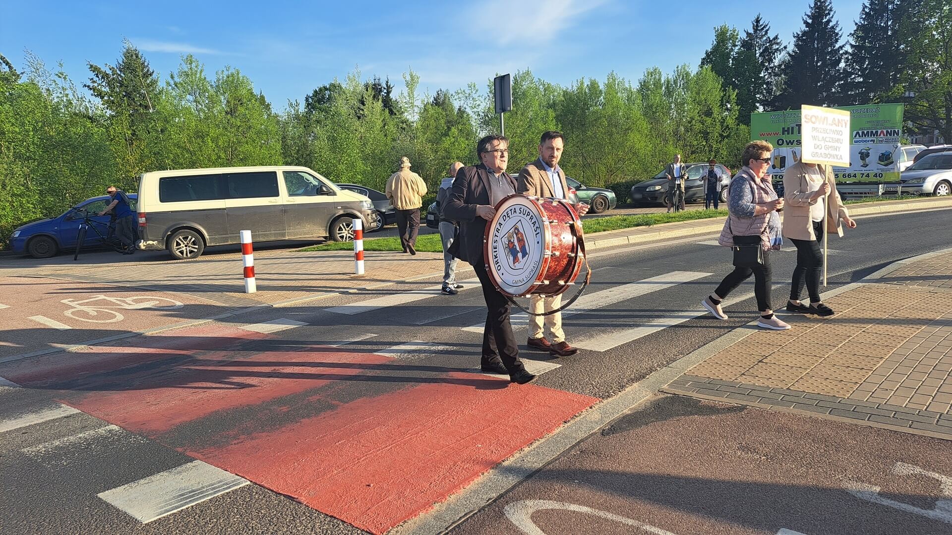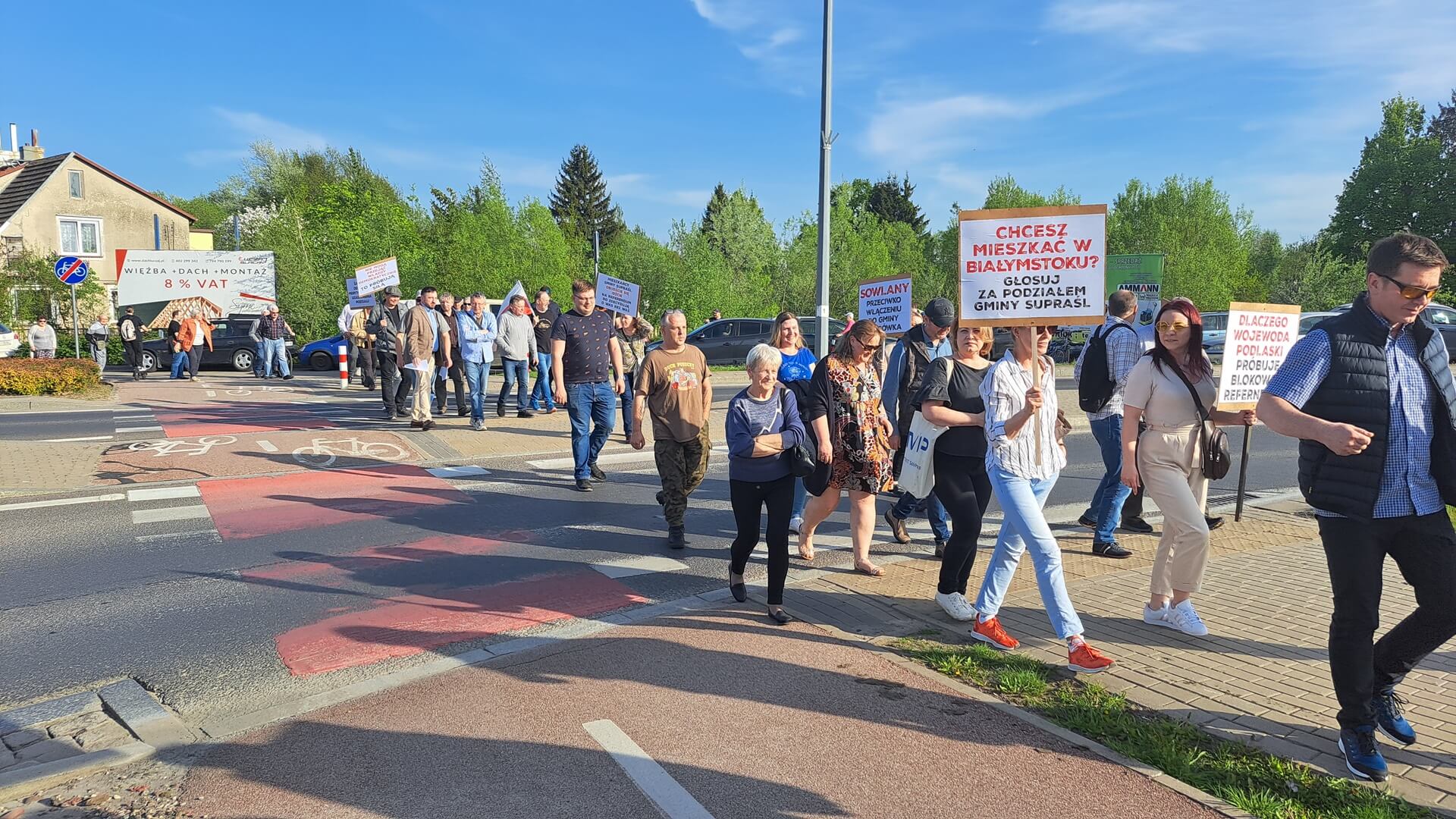 "Nie dla podziału gminy Supraśl", "Protest przeciwko próbie blokowania referendum, "Żądamy od rządu merytorycznego uzasadnienia podziału", "Dlaczego wojewoda podlaski próbuje blokować referendum", "Nie mogą przejąć władzy demokratycznie próbują siłą" - m.in. takie hasła mieli na transparentach przeciwnicy powstania nowej gminy Grabówka podczas swojego - jak to nazwali - protestu ostrzegawczego. Domagali się też, aby Rada Ministrów uzasadniła podział gminy Supraśl. Przez dwie godziny ok. 50 osób(dane policji) chodziło po przejściach dla pieszych z jednej strony ronda w Zaściankach. Policja kierowała ruchem, były objazdy, choć przepuszczano autobusy miejskie, niektóre auta.