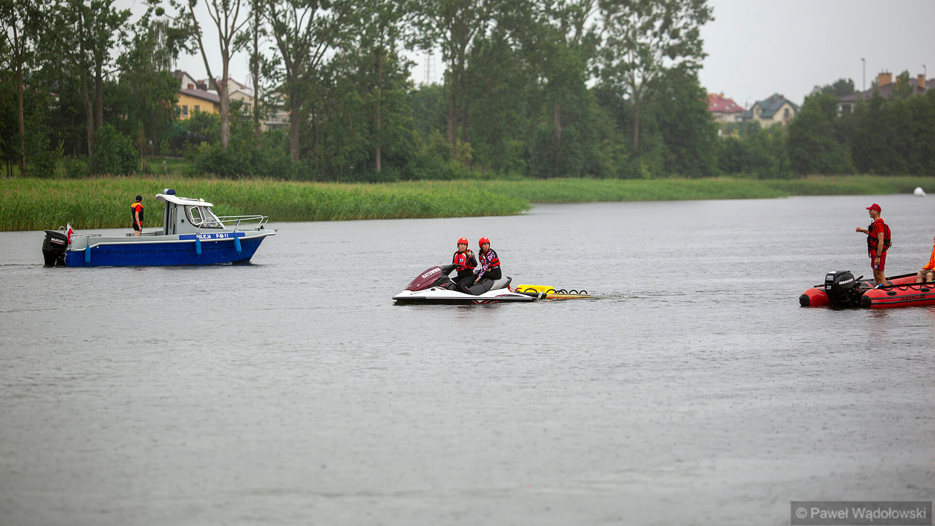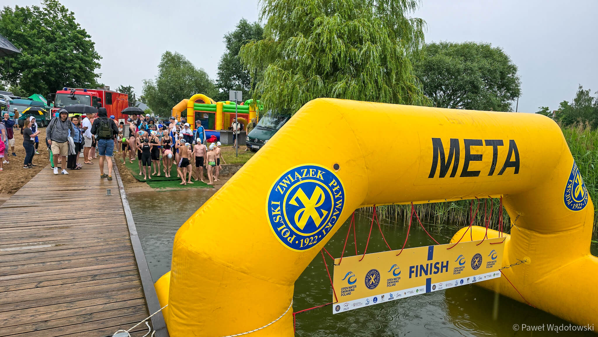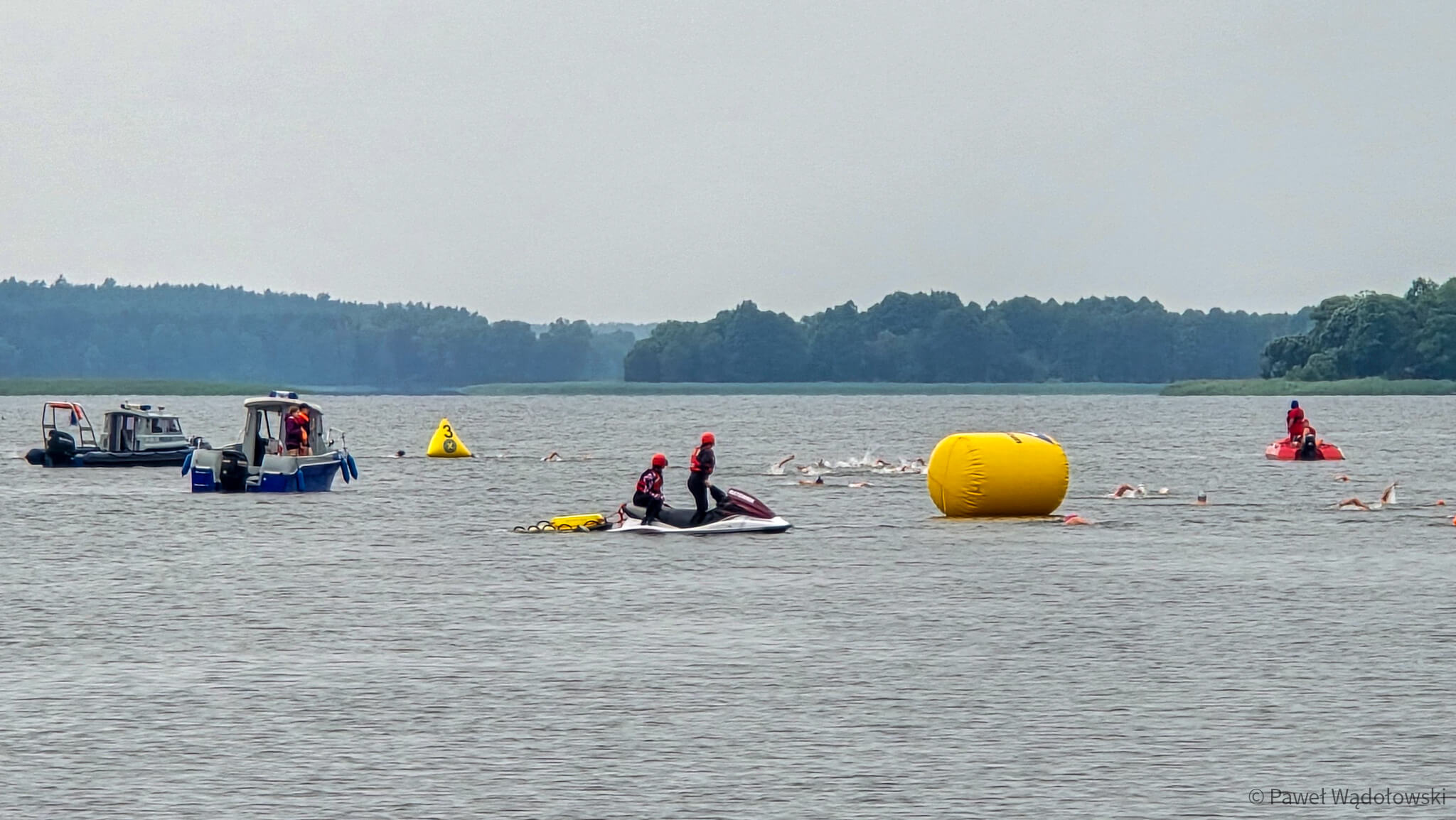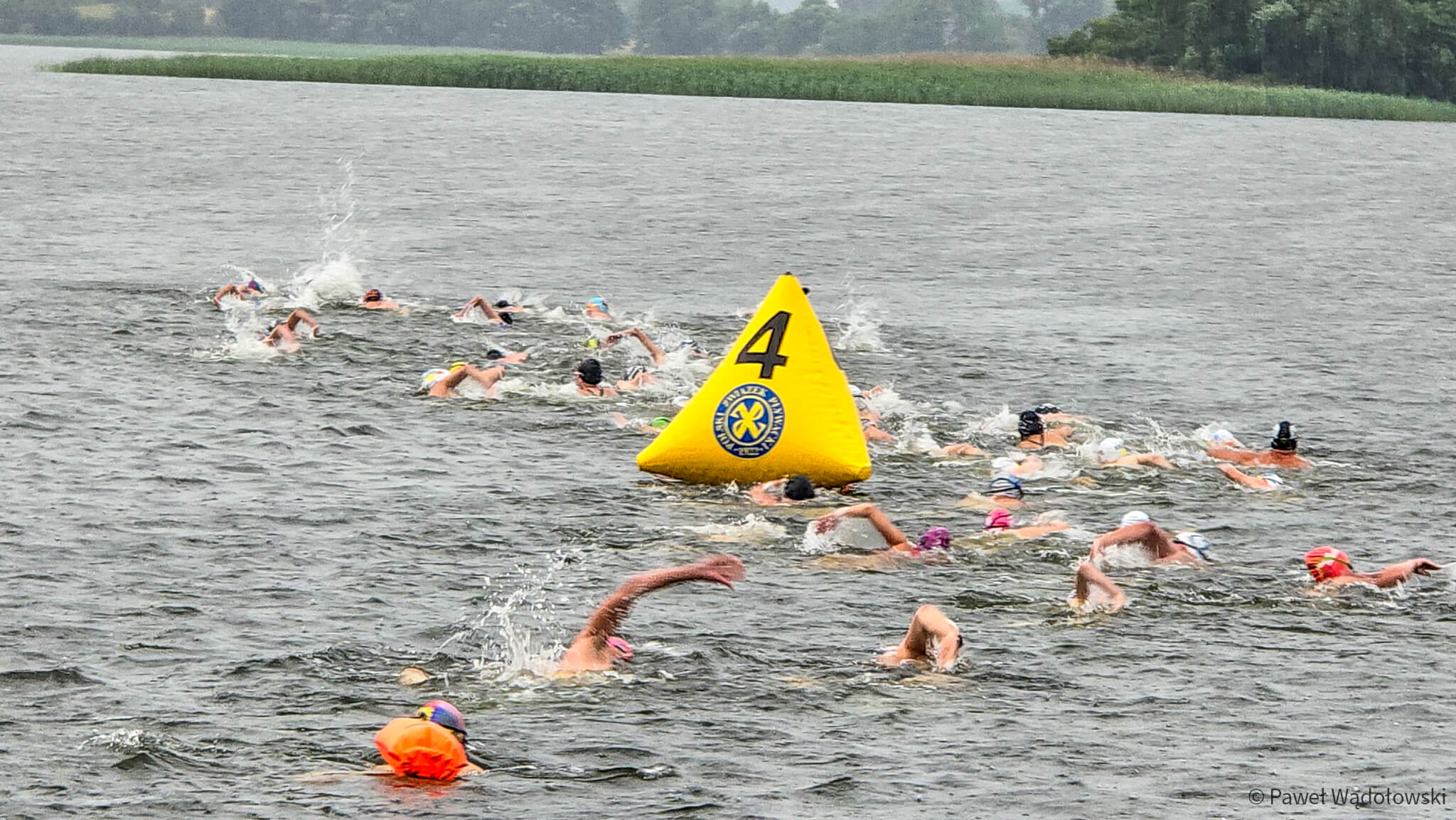 Ulewny deszcz i burza zdominowały zawody. To rywalizacja w pucharze Polski w pływaniu długodystansowym na otwartych wodach. Na początku imprezy startowali najmłodsi, którzy płynęli na materacach na dystansie 50 metrów. Dorośli walczą na trasie 1000 i 3000 metrów. A podsumowaniem imprezy będą mistrzostwa służb mundurowych na dystansie ponad 10 kilometrów.