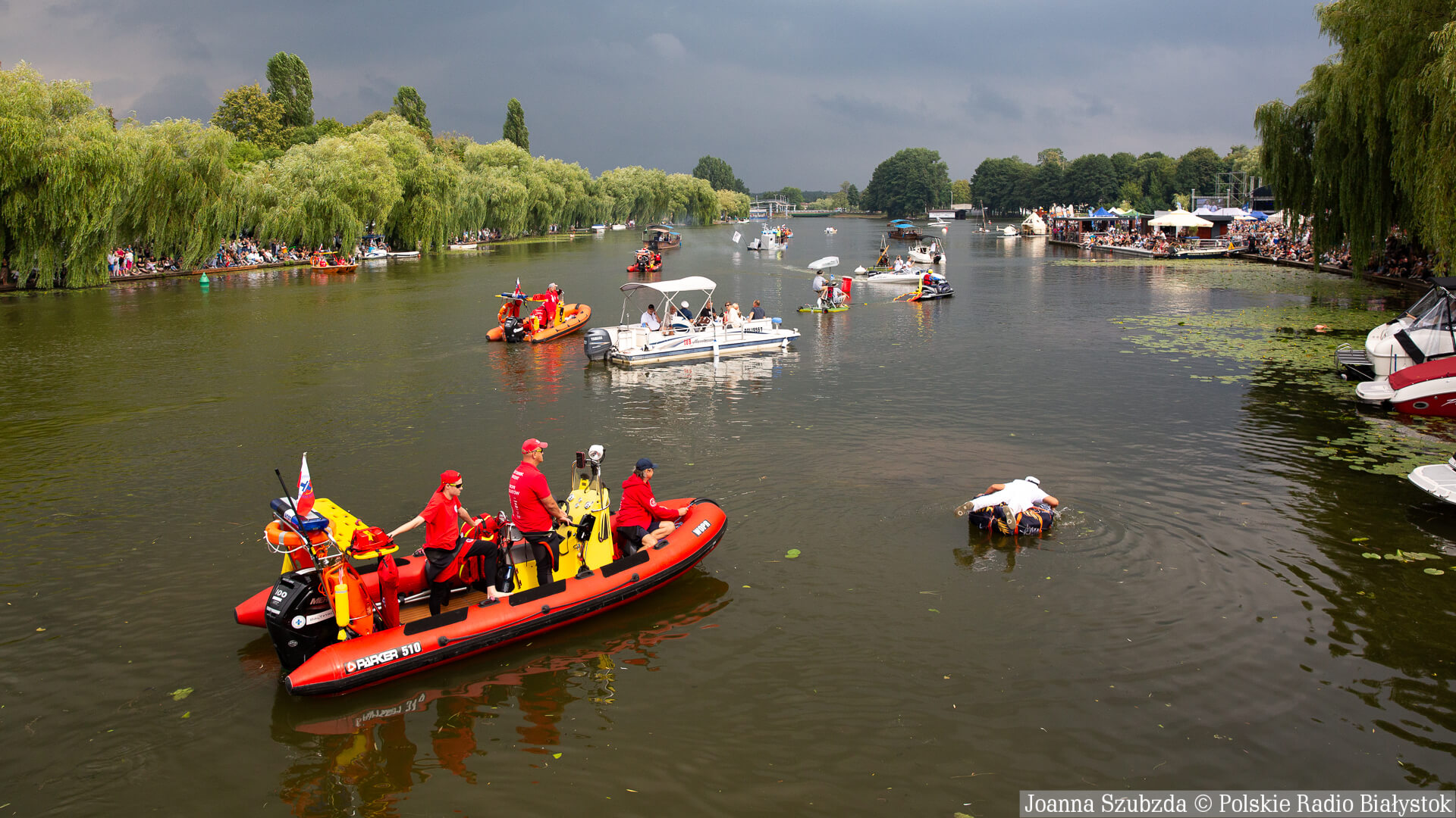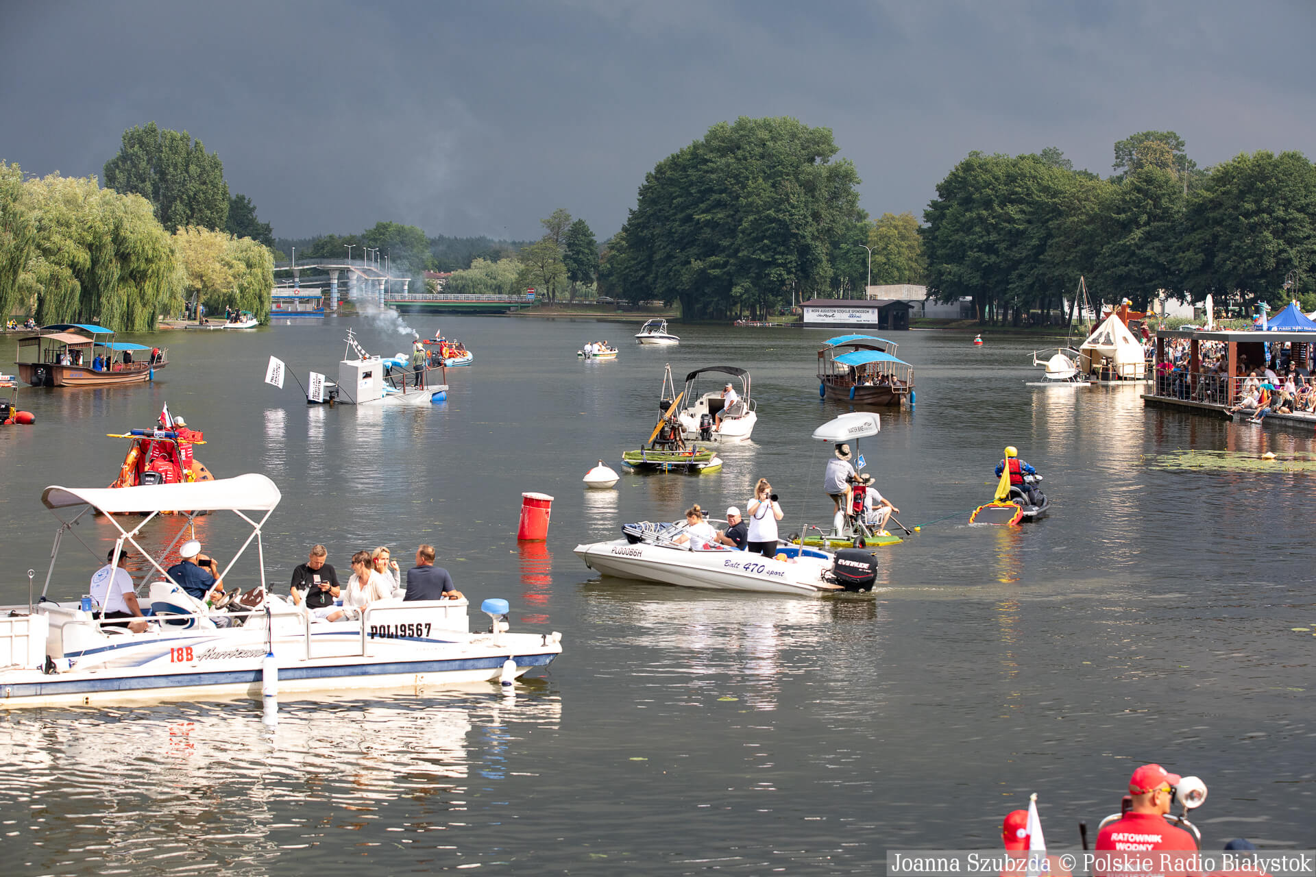 Z powodu gwałtownego wiatru służby odwołały koncerty, które miały odbyć się w ramach Mistrzostw Polski w Pływaniu na Byle Czym w Augustowie.