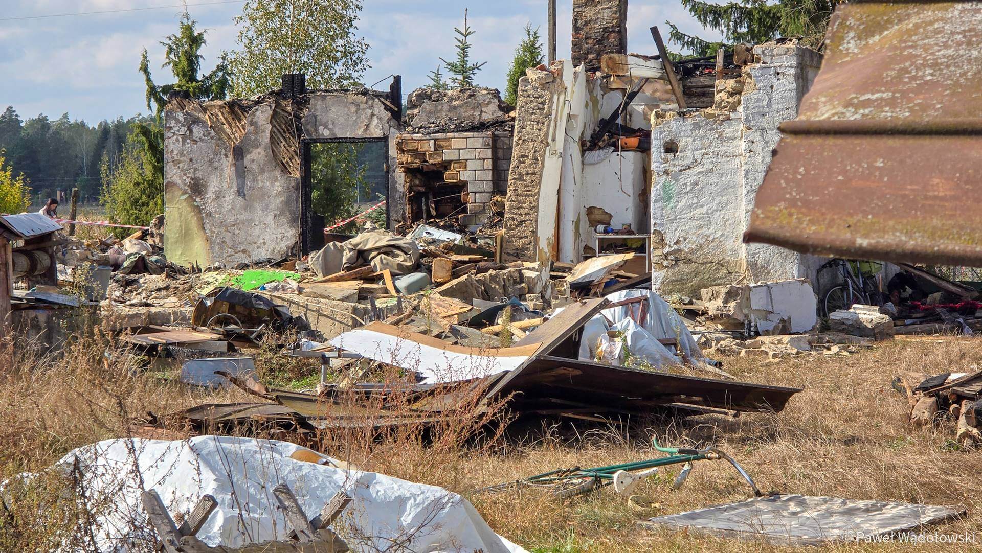 - Podczas działań gaśniczych znaleziono łuski od amunicji, więc na ten czas usunięto strażaków, wezwano grupę pirotechniczną policji, która pozbierała te elementy i teraz dalej kontynuujemy prace gaśnicze, aby prokuratura mogła zakończyć oględziny, aby można było zabrać ciało. I wtedy przy pomocy cięższego sprzętu dostarczonego przez gminę Grajewo będziemy chcieli położyć wszystkie ściany, komin, aby ten budynek nie stwarzał zagrożenia dla innych osób - mówi brygadier Daniel Lewczuk.