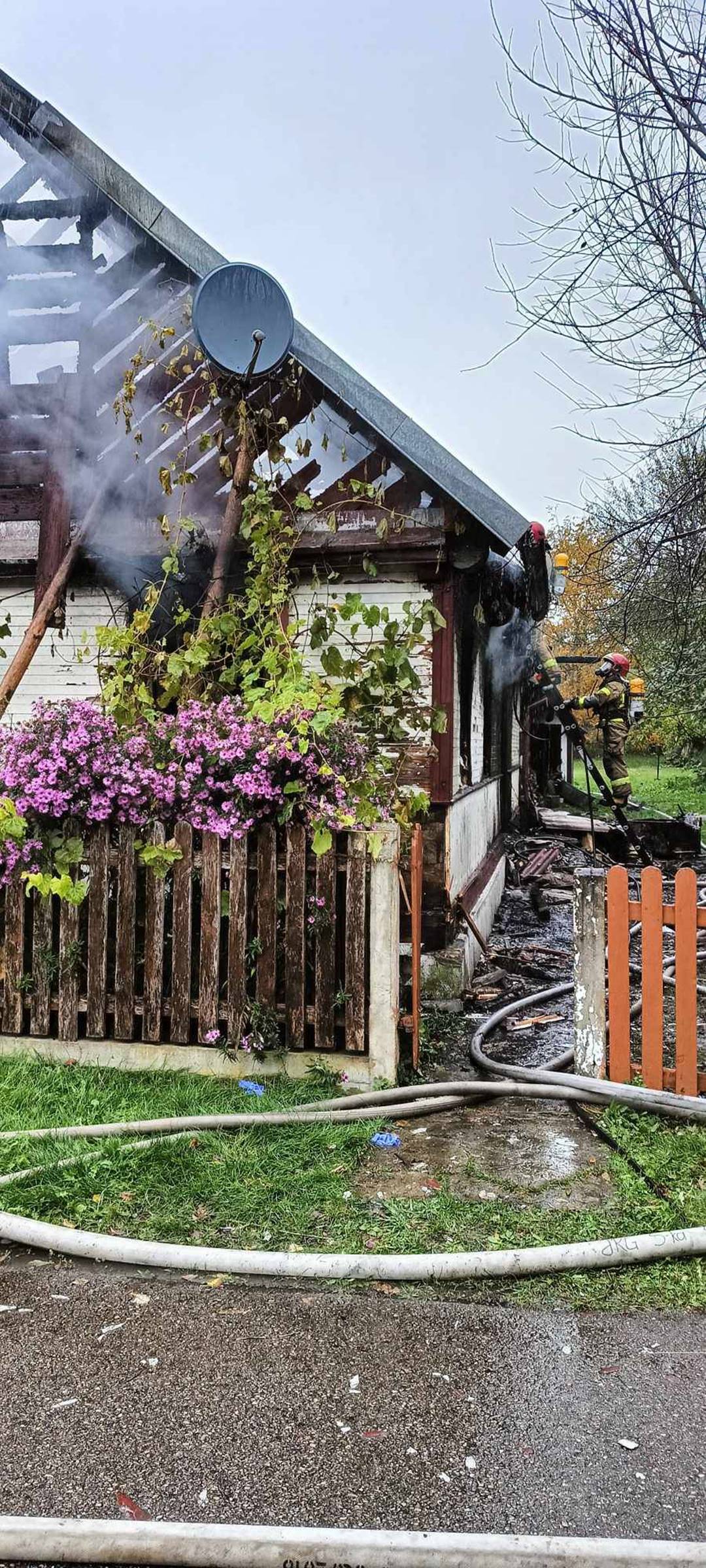 Pożar budynku mieszkalnego w miejscowości Nowodziel, 13.10.2024, źródło: OSP Kuźnica
