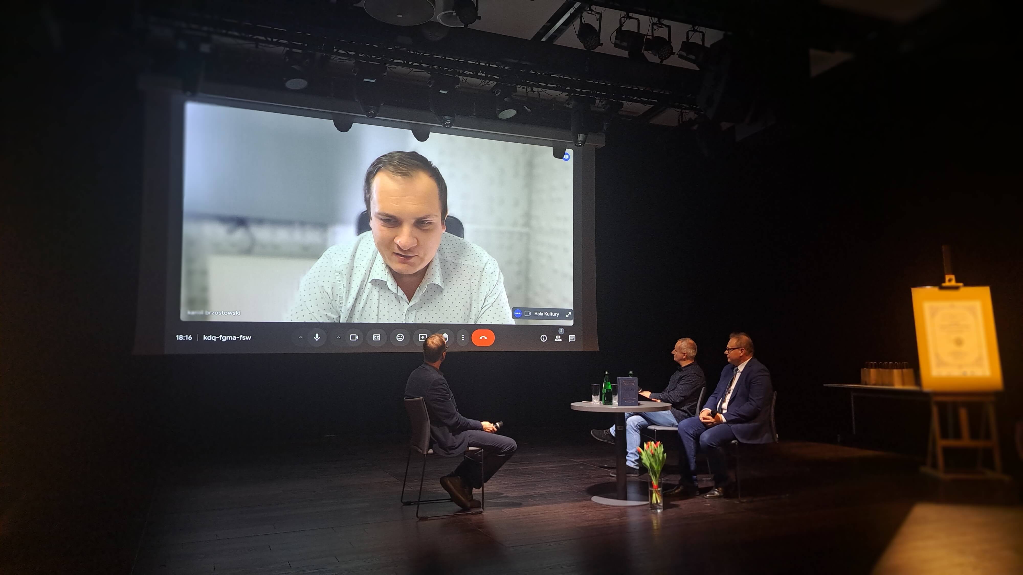 Sam ofiarodawca uczestniczył w promocji książki swojego przodka dzięki łączom internetowym i włączał się do dyskusji prowadzonej w Hali Kultury.