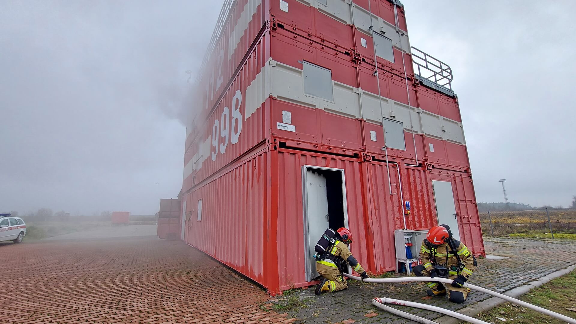 Kolejne ćwiczenia odbyły się w Łapach, gdzie strażacy szkolili umiejętność odnajdywania i wynoszenia osoby poszkodowanej z zadymionego i ciemnego pomieszczenia.