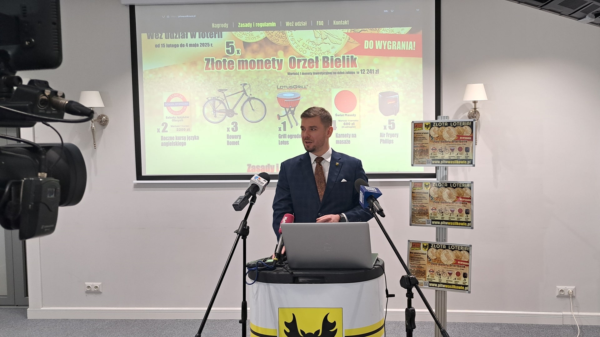 Konferencja prasowa burmistrza Wasilkowa Adriana Łuckiewicza dot. loterii PIT-owej, 19.02.2025, fot. Iza Serafin