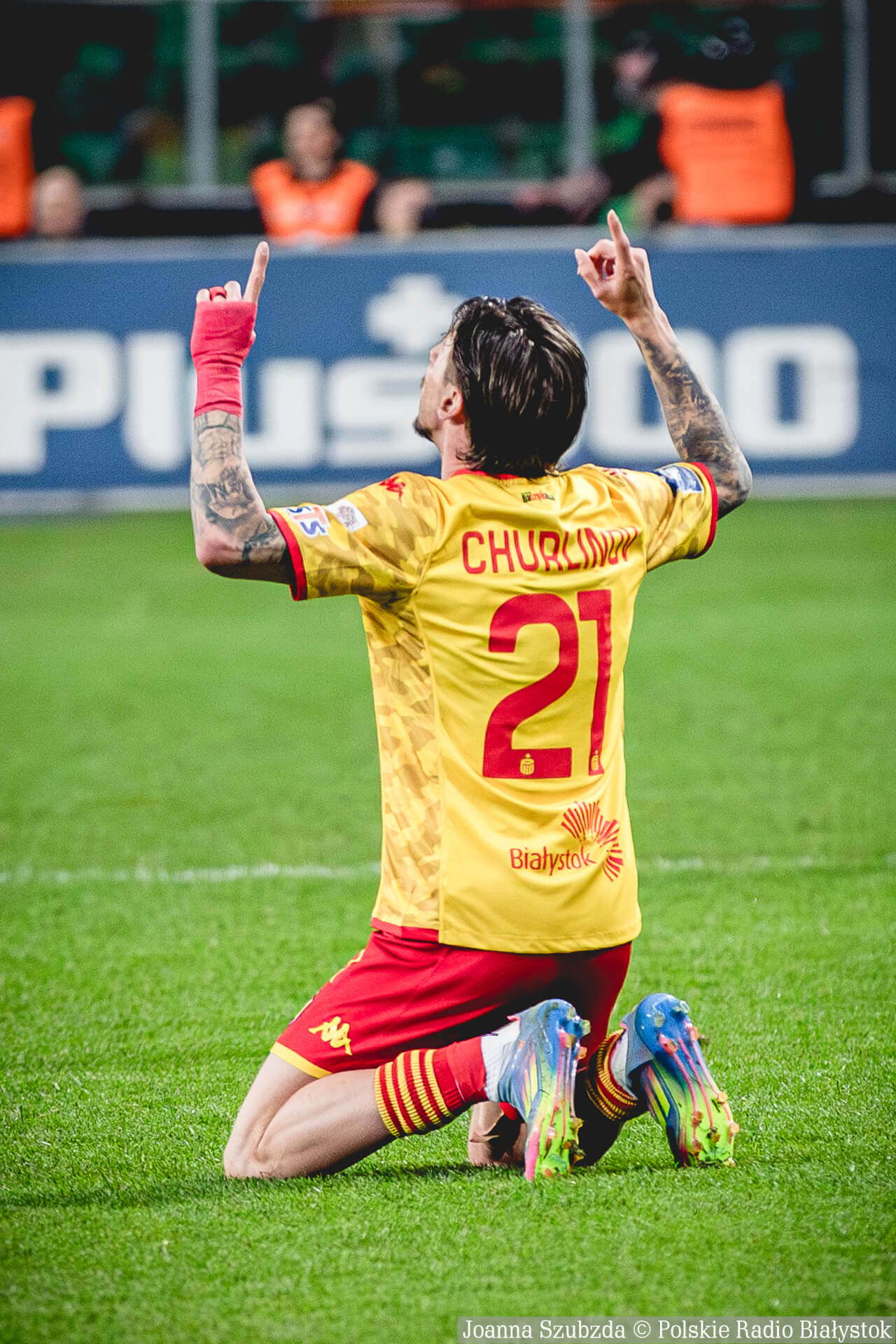 Jagiellonia objęła prowadzenie kilka minut później. Najpierw na bramkę uderzał Wojtuszek, jego strzał zablokowali rywale, a skuteczną dobitką popisał się Churlinov.