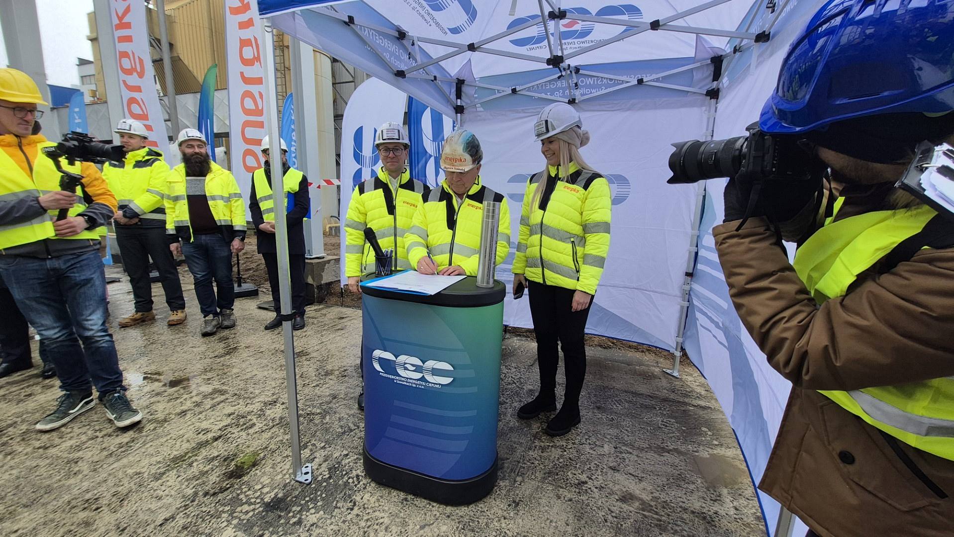 W Przedsiębiorstwie Energetyki Cieplnej w Suwałkach wmurowano akt erekcyjny pod budowę nowych kotłów parowych na biomasę, 11.04.2025, fot. Iza Kosakowska