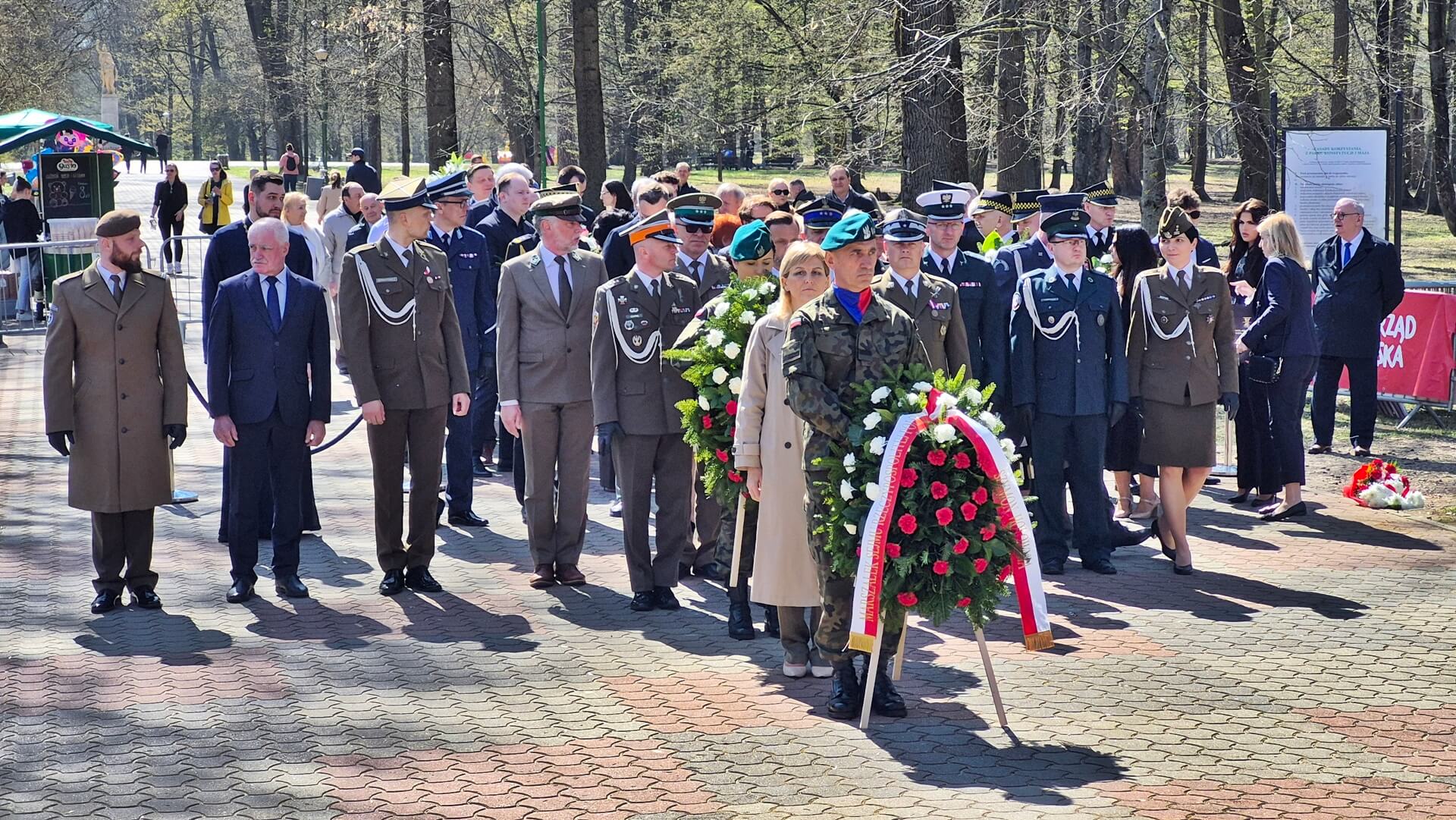 W południe główne uroczystości odbyły się pod pomnikiem ofiar zbrodni katyńskiej. Kwiaty złożyli przedstawiciele władz województwa podlaskiego: wojewoda Jacek Brzozowski, wicemarszałek Wiesława Burnos, Białegostoku, parlamentarzystów, różnych służb mundurowych i instytucji, organizacji kombatanckich, stowarzyszeń, w tym Rodziny Katyńskiej. Asystowali żołnierze, poczty sztandarowe.
