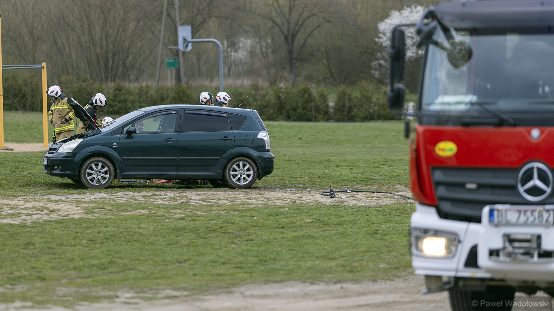 Akcja się już zakończyła. Jak powiedział Polskiemu Radiu Białystok młodszy kapitan Piotr Dubiel z Komendy Miejskiej PSP w Łomży, trzeba było przeprowadzić samochód w bezpieczne miejsce.