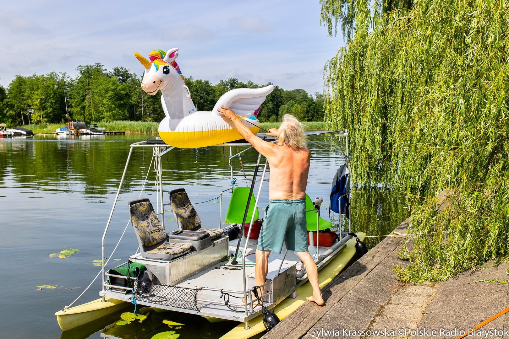 Plastikowe butelki, styropian, palety, krzesła, deski, a nawet... stare narty - z takich elementów powstawały niezwykłe pływadła, które już w niedzielę (27.07) wystartowały w Augustowie w 28. Mistrzostwach Polski w Pływaniu na Byle Czym "Co ma pływać - nie utonie".