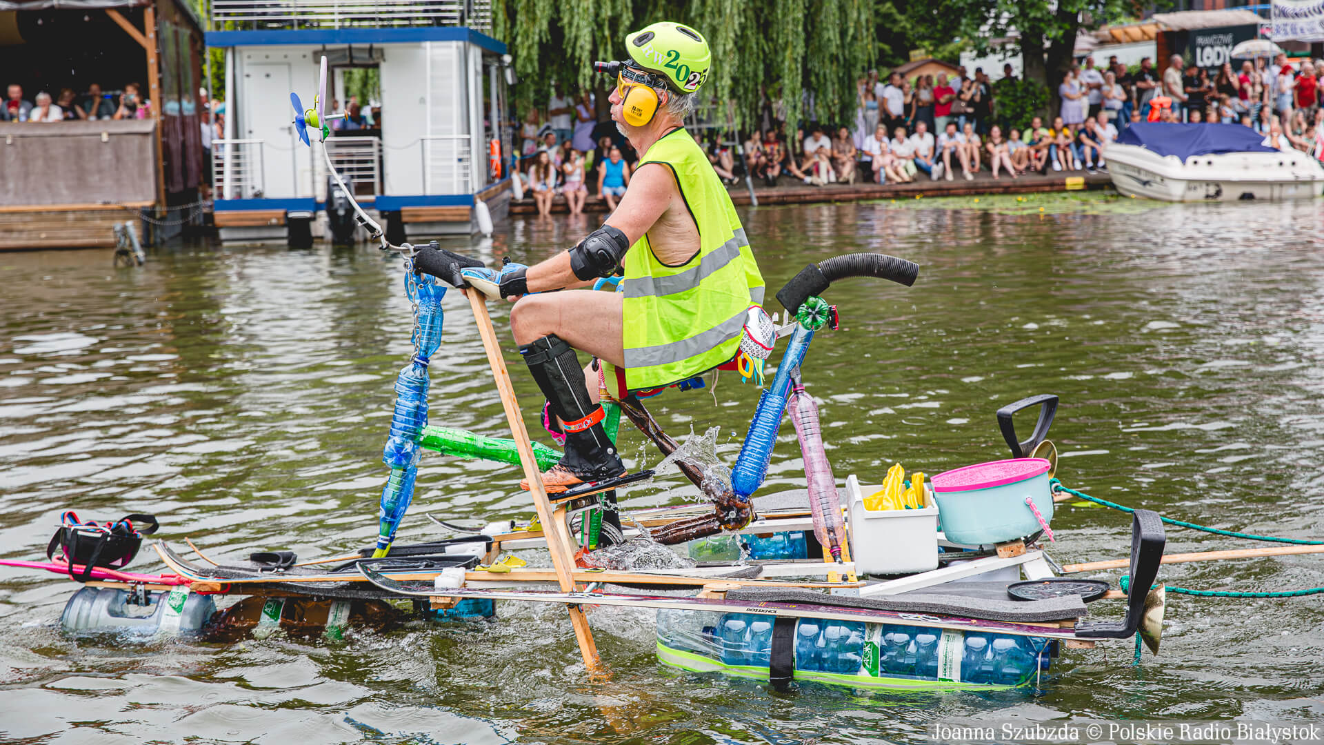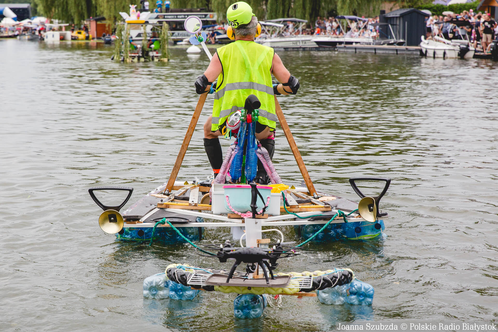 Pływadło "Rowoder" powstało m.in. ze starej ramy od roweru, nart, plastikowych butelek, wiaderek i wszystkiego, co konstruktor znalazł podczas swoich rowerowych wypraw po Białymstoku, albo podarowali mu sąsiedzi.