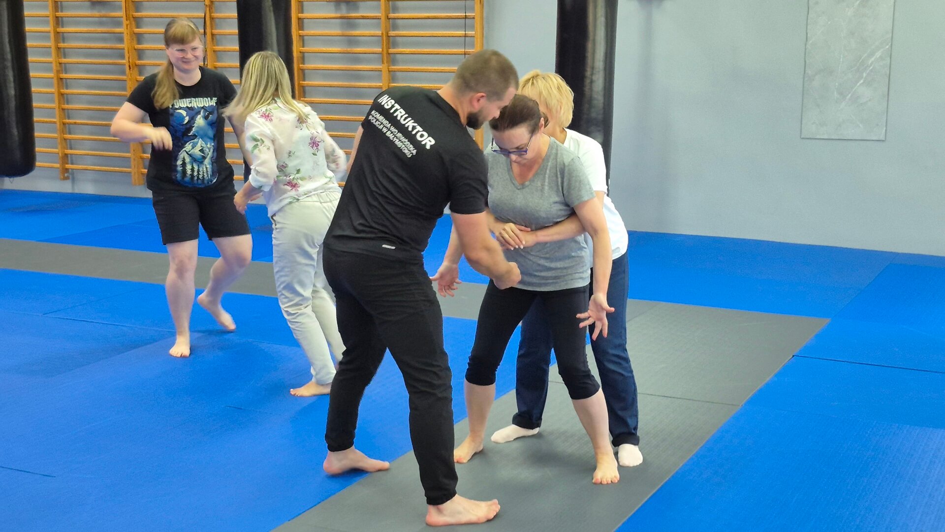 Zajęcia prowadzą podlascy policjanci, którzy pokazują jak np. uwolnić się z uścisku lub w jaki sposób opanować agresywnego pacjenta.