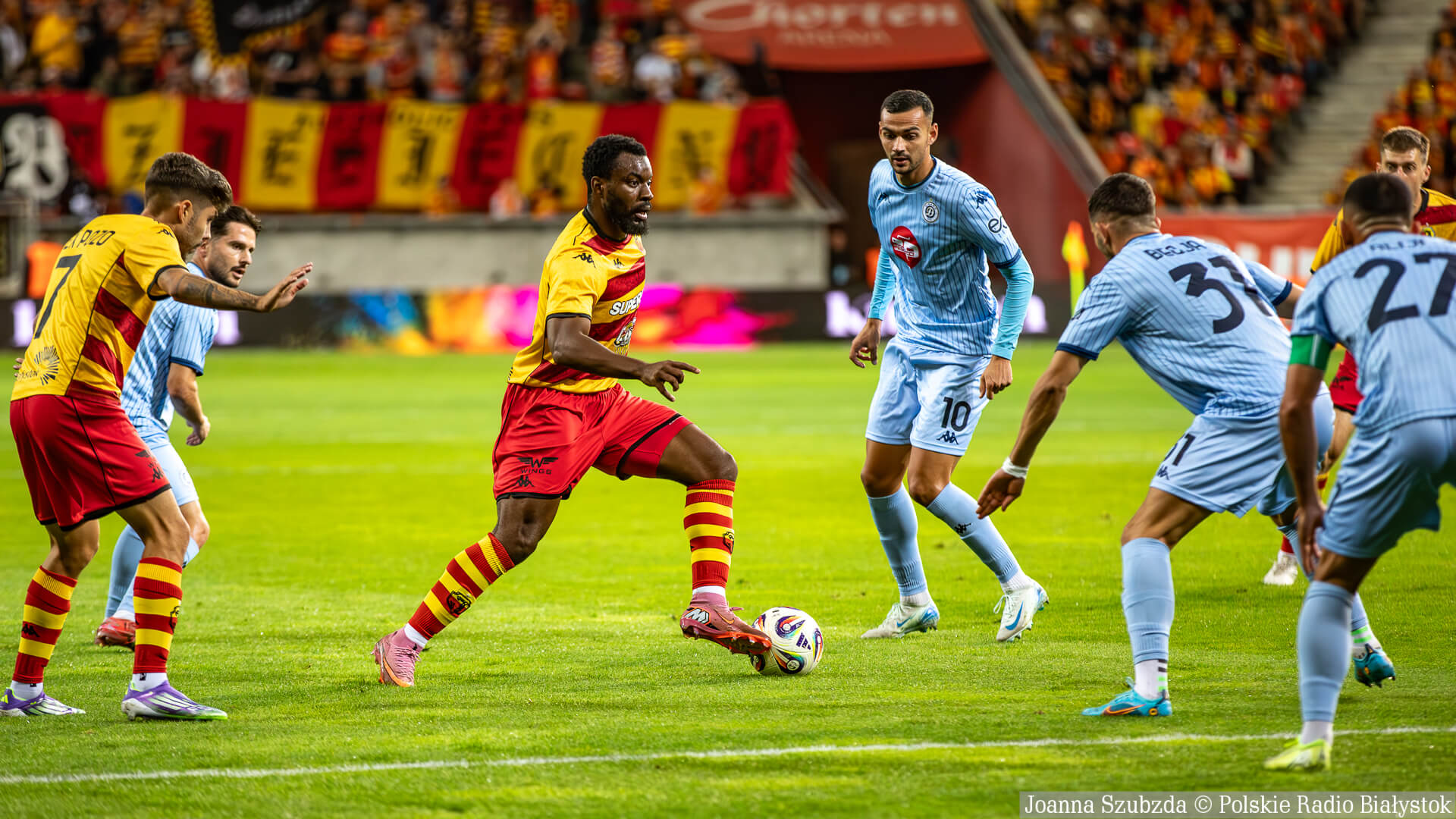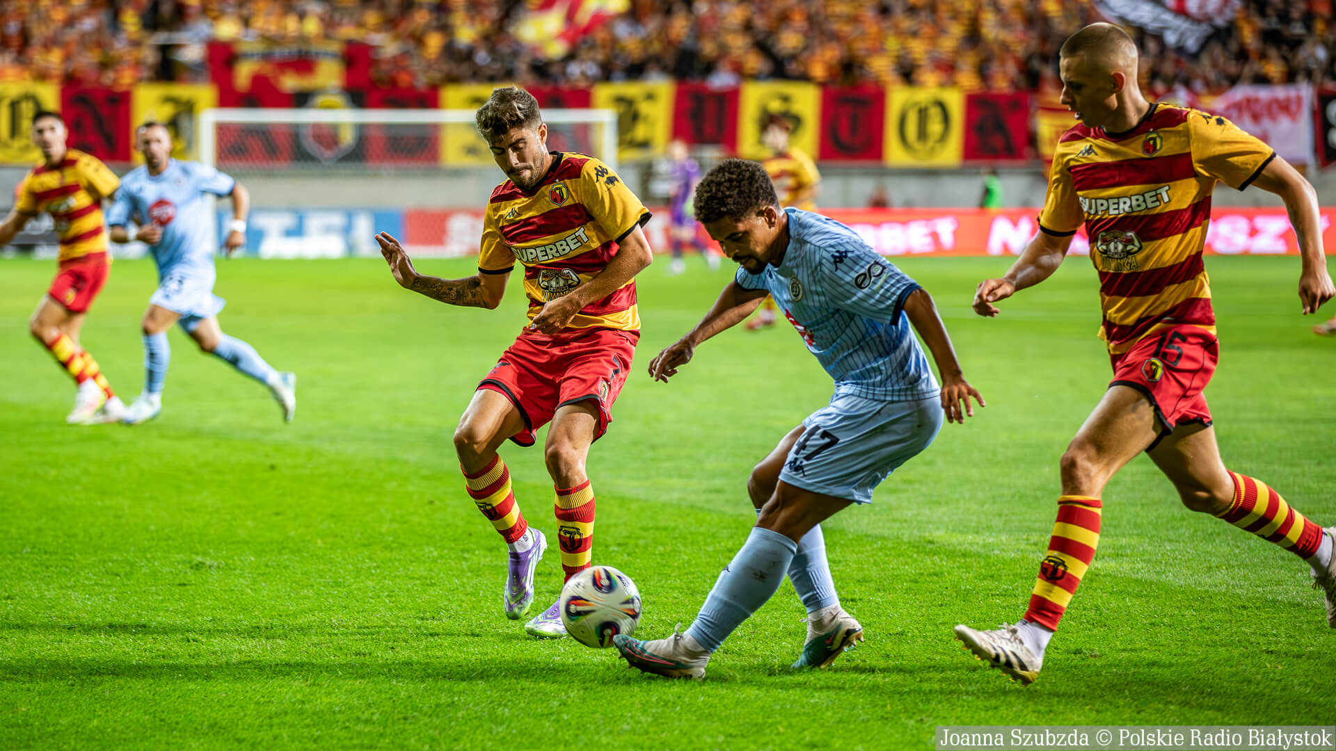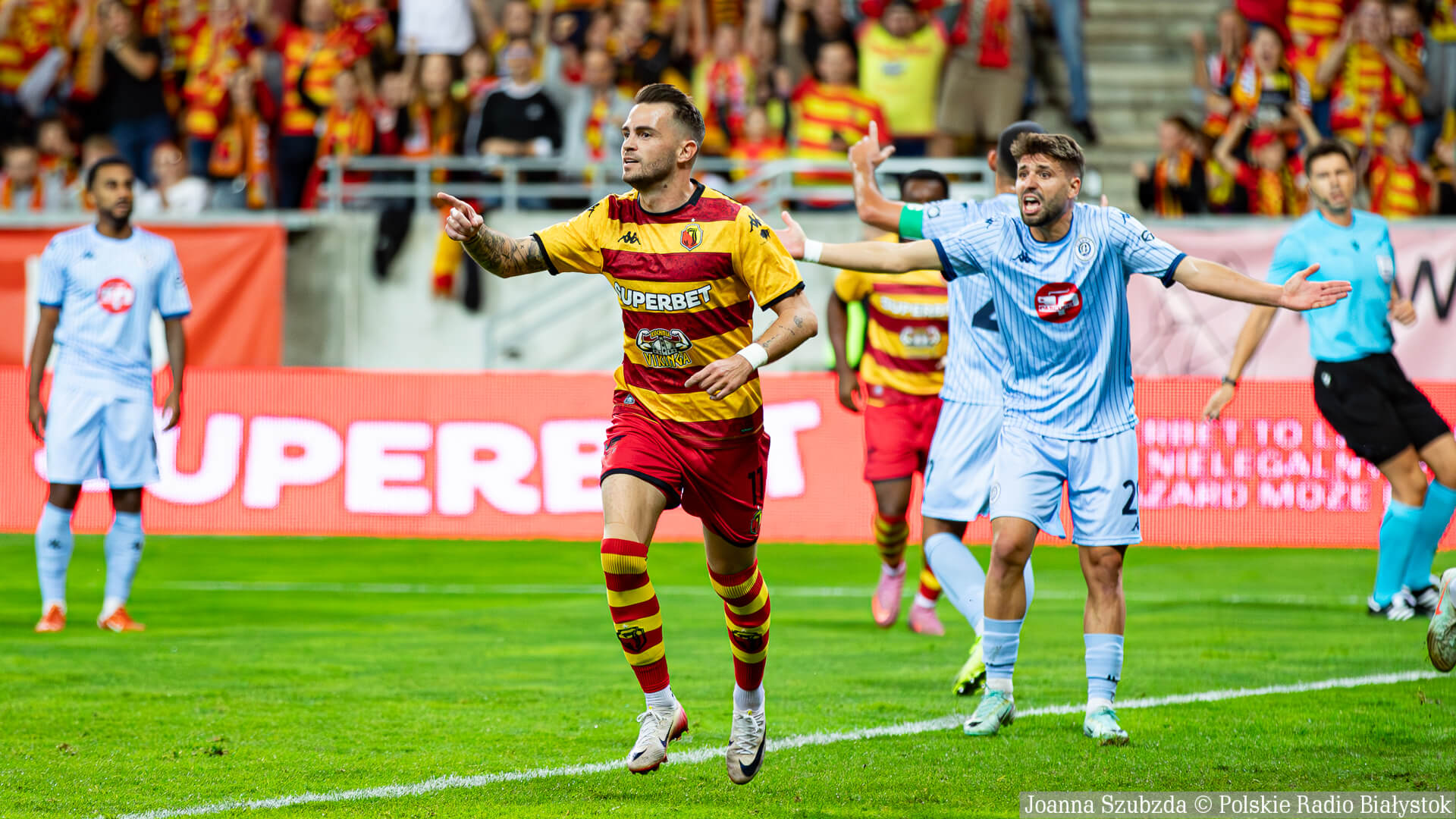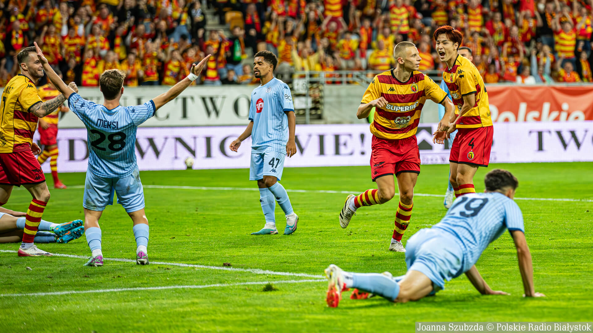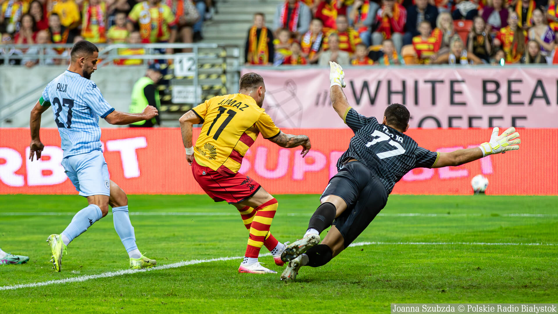 Jagiellonia Białystok w czwartek (21.08) wieczorem grała pierwszy mecz w 4. rundzie eliminacji Ligi Konferencji. Żółto-czerwoni podejmowali albańskie Dinamo City Tirana i pewnie pokonali rywali 3:0.