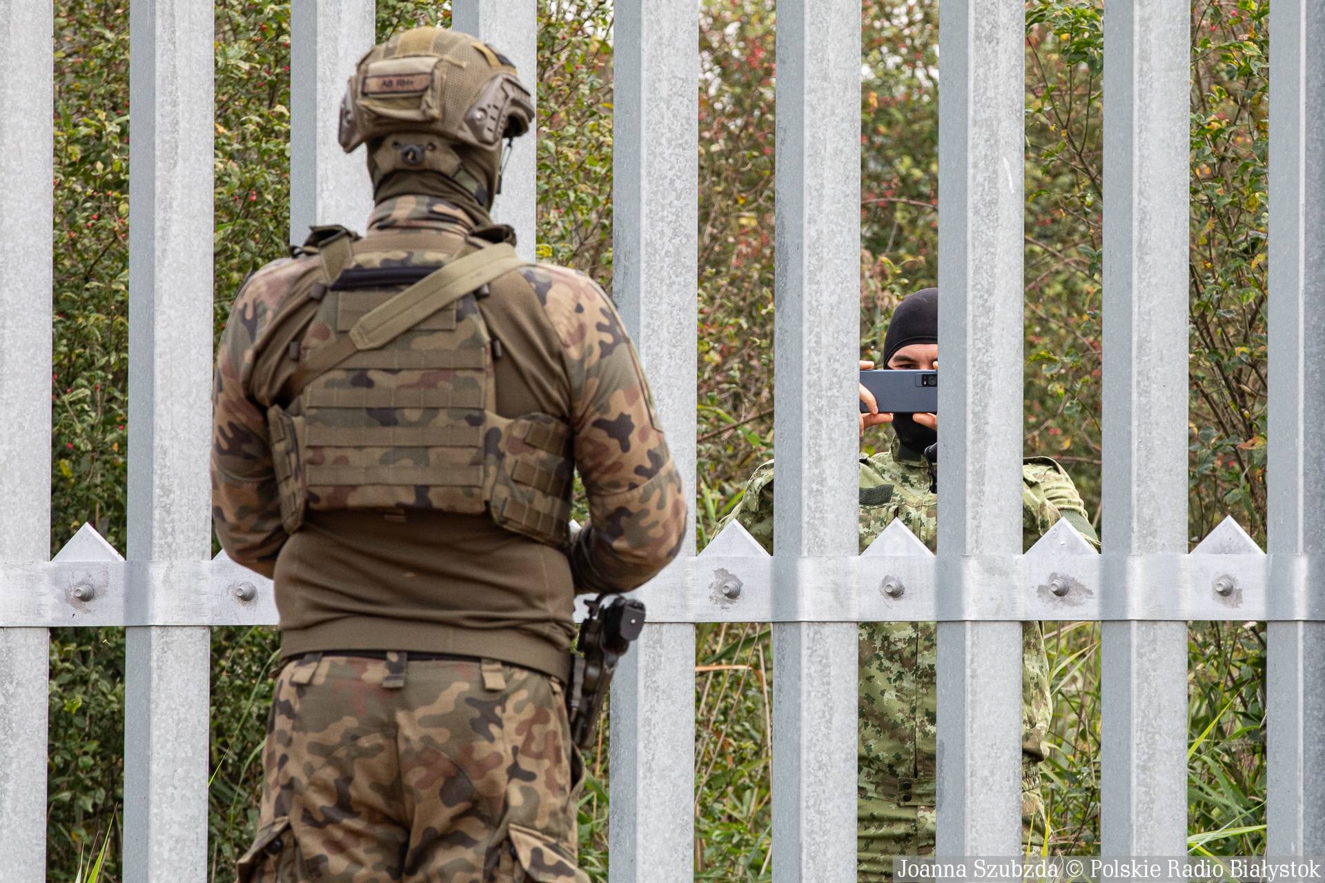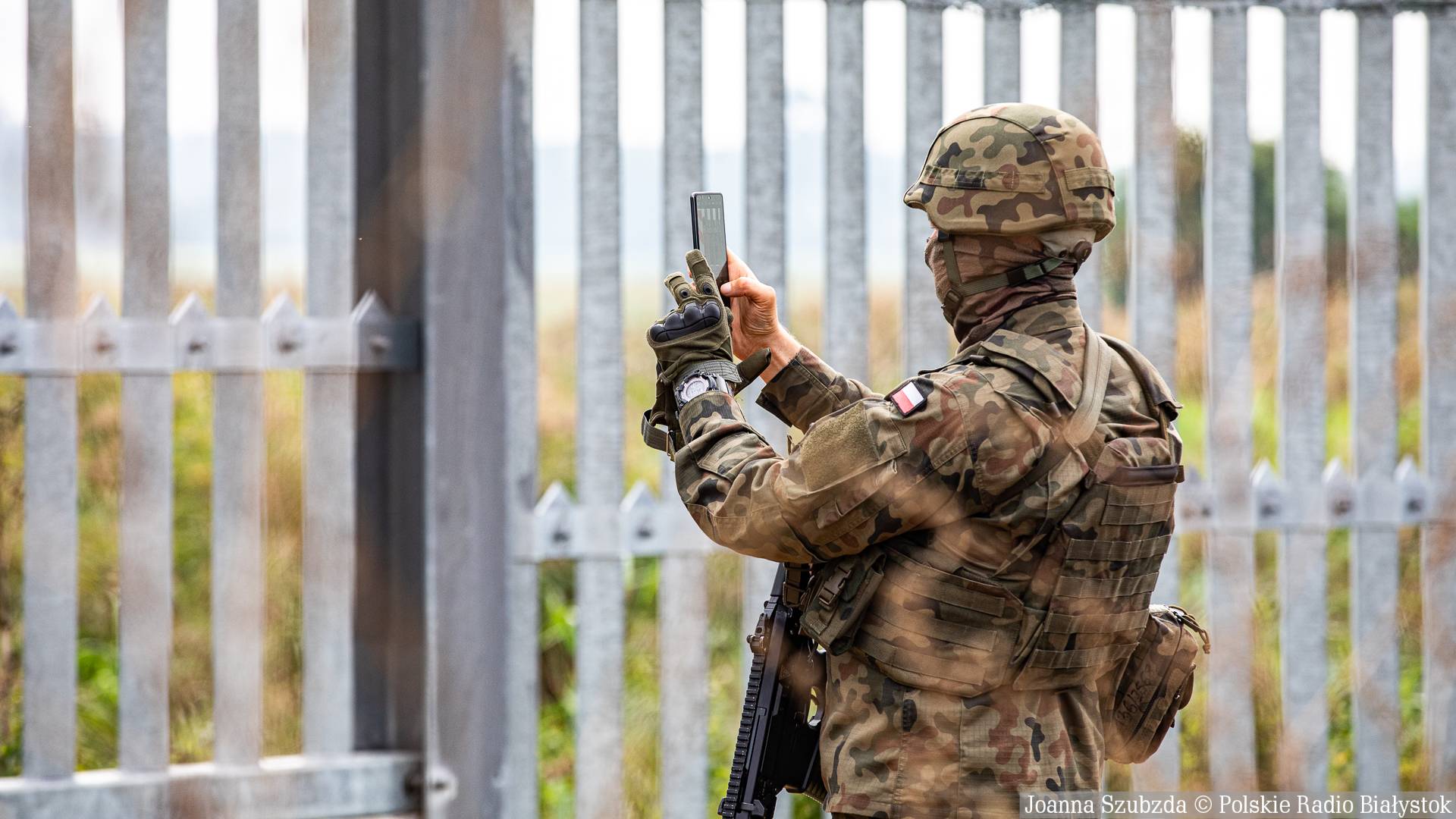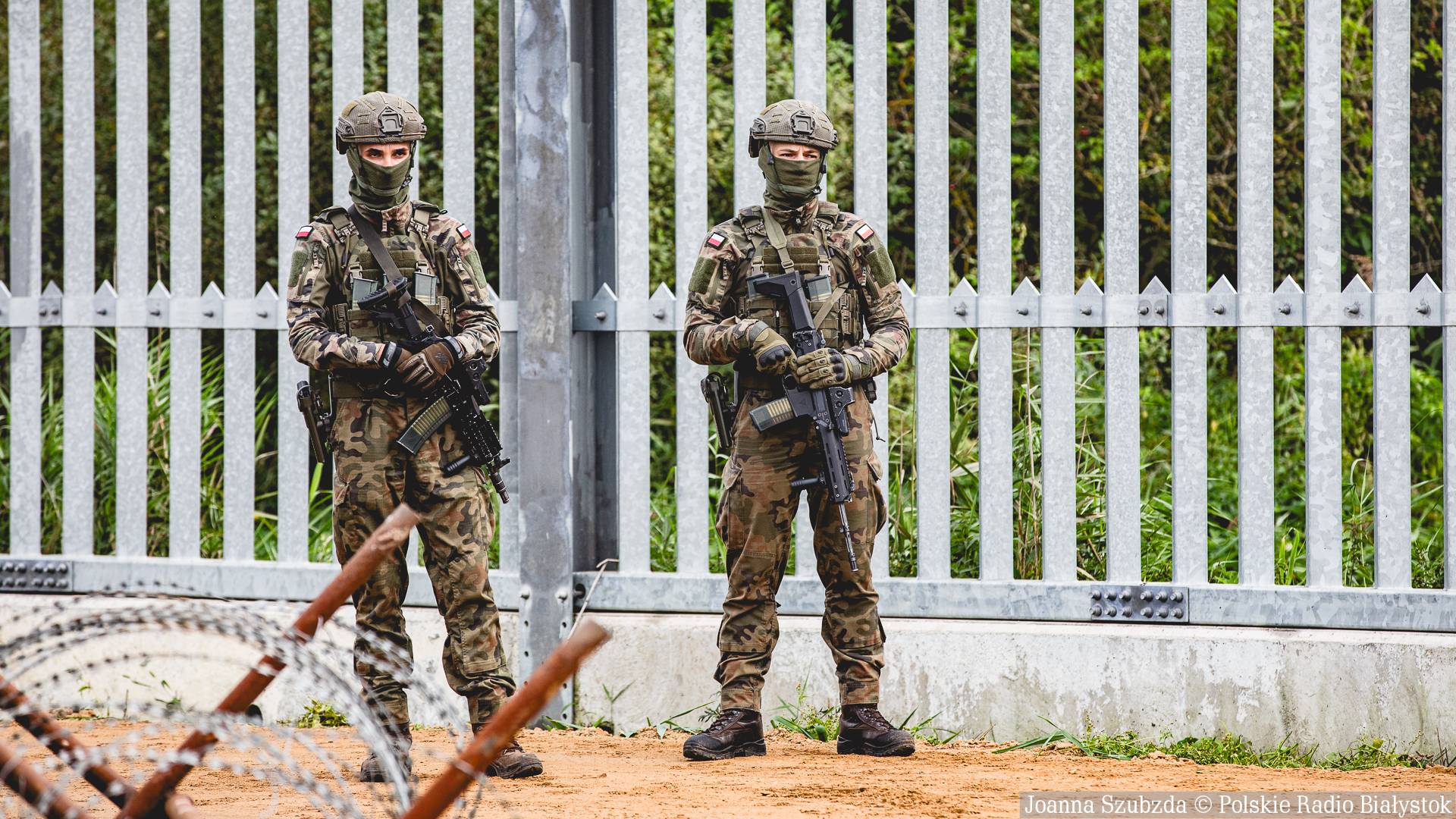Po odprawie ze służbami, Donald Tusk i Ursula von der Leyen obejrzeli miejsce składowania elementów do budowy "Tarczy Wschód", a potem zmodernizowaną, stalową zaporę na granicy, przy której - na zakończenie spotkania - były oświadczenia dla mediów.