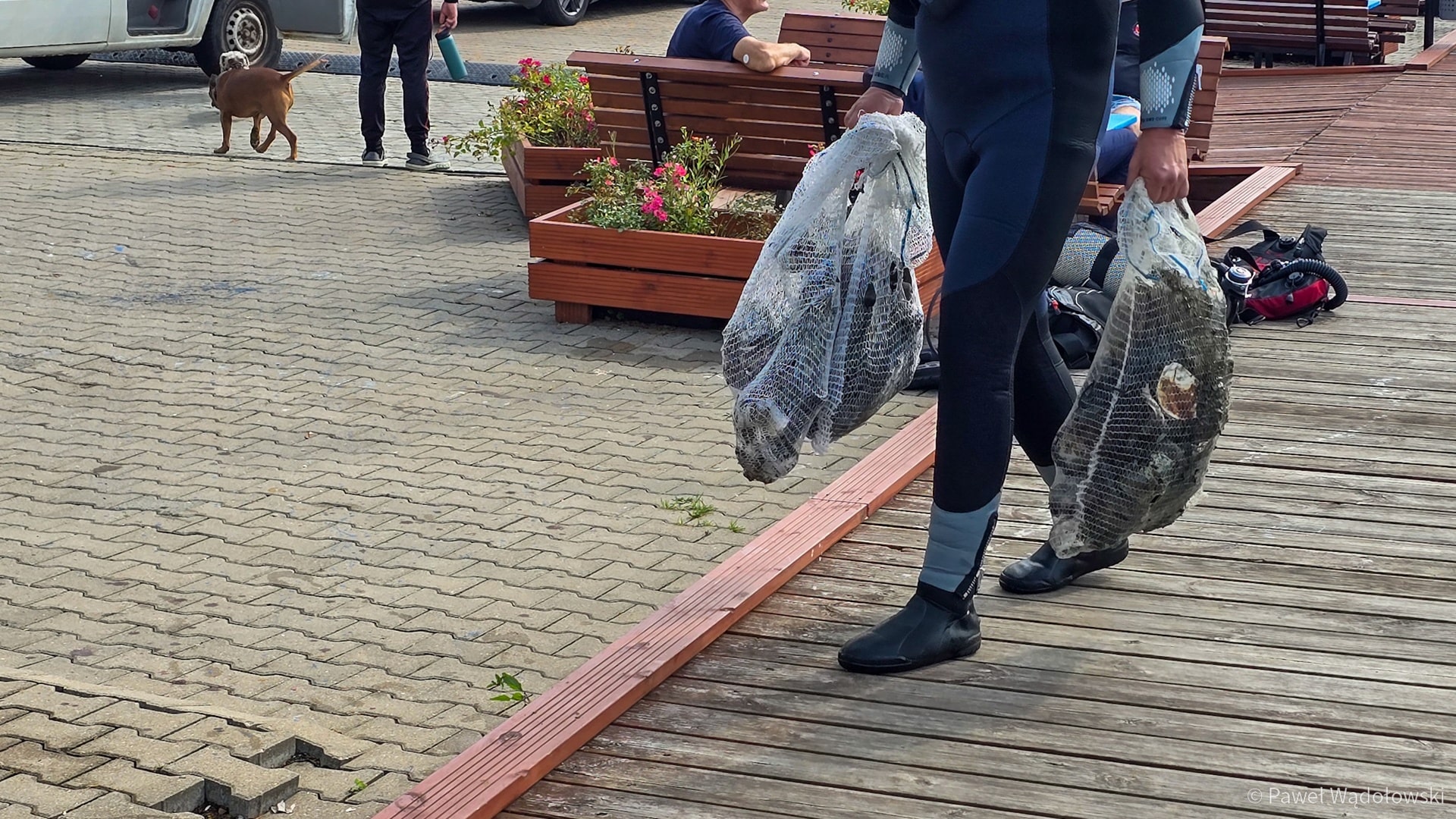 Nurkowie wyciągnęli kilkadziesiąt kilogramów śmieci.