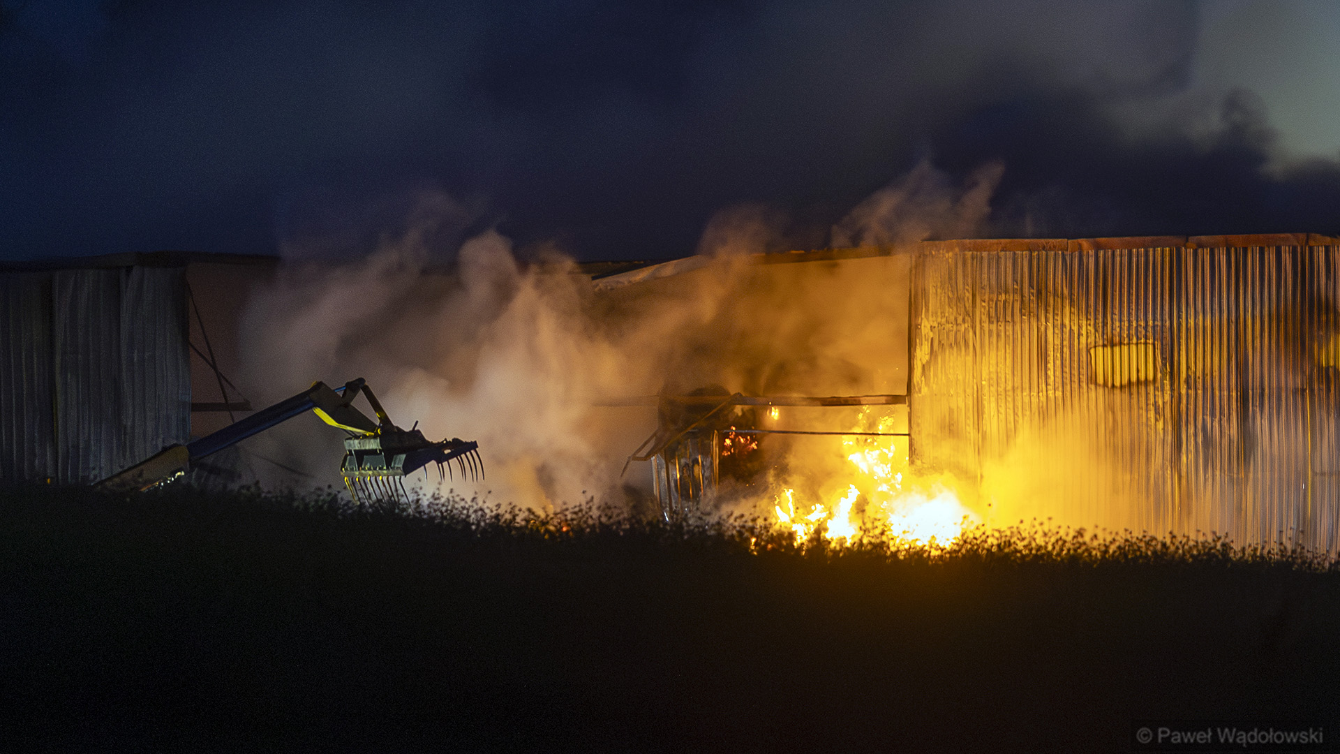 Pożar zaczął się po godz. 3 od jednej z maszyn rolniczych, które stały w budynku. Jak wynikało z pierwszych informacji, które dotarły do dyżurnego PSP, paliła się ładowarka teleskopowa.