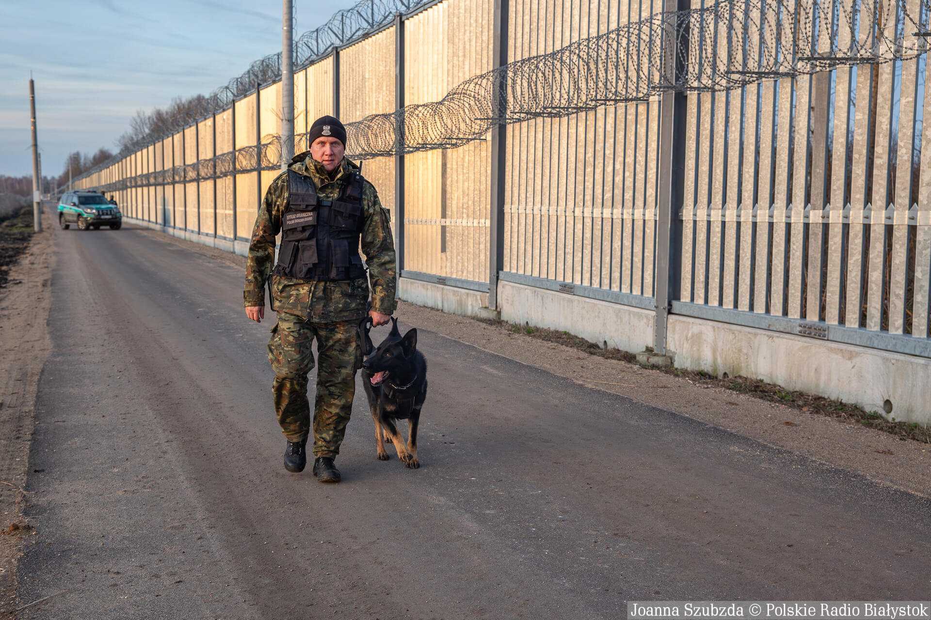 Powiedział, że migranci wykorzystują do przekroczenia zapory drabiny, linki, przecinają zaporę, a następnie wykorzystują drabiny, by pokonać zwoje concertiny przy drodze. Dlatego POSG zawnioskowało i otrzymał zgodę na kolejne zabezpieczenie wzdłuż technicznej drogi.