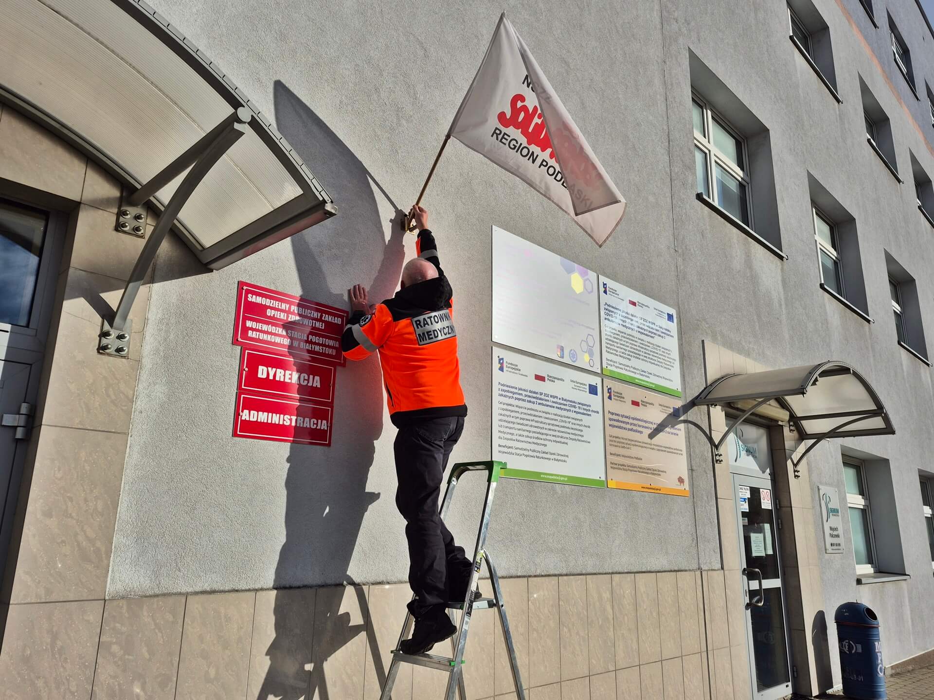 Nie godzą się na połączenie Wojewódzkiej Stacji Pogotowia Ratunkowego w Białymstoku z jakąkolwiek placówką medyczną. Cztery działające w pogotowiu związki zawodowe rozpoczęły akcję protestacyjną. Na razie polega ona na oflagowaniu siedziby przy Poleskiej i karetek pogotowia.