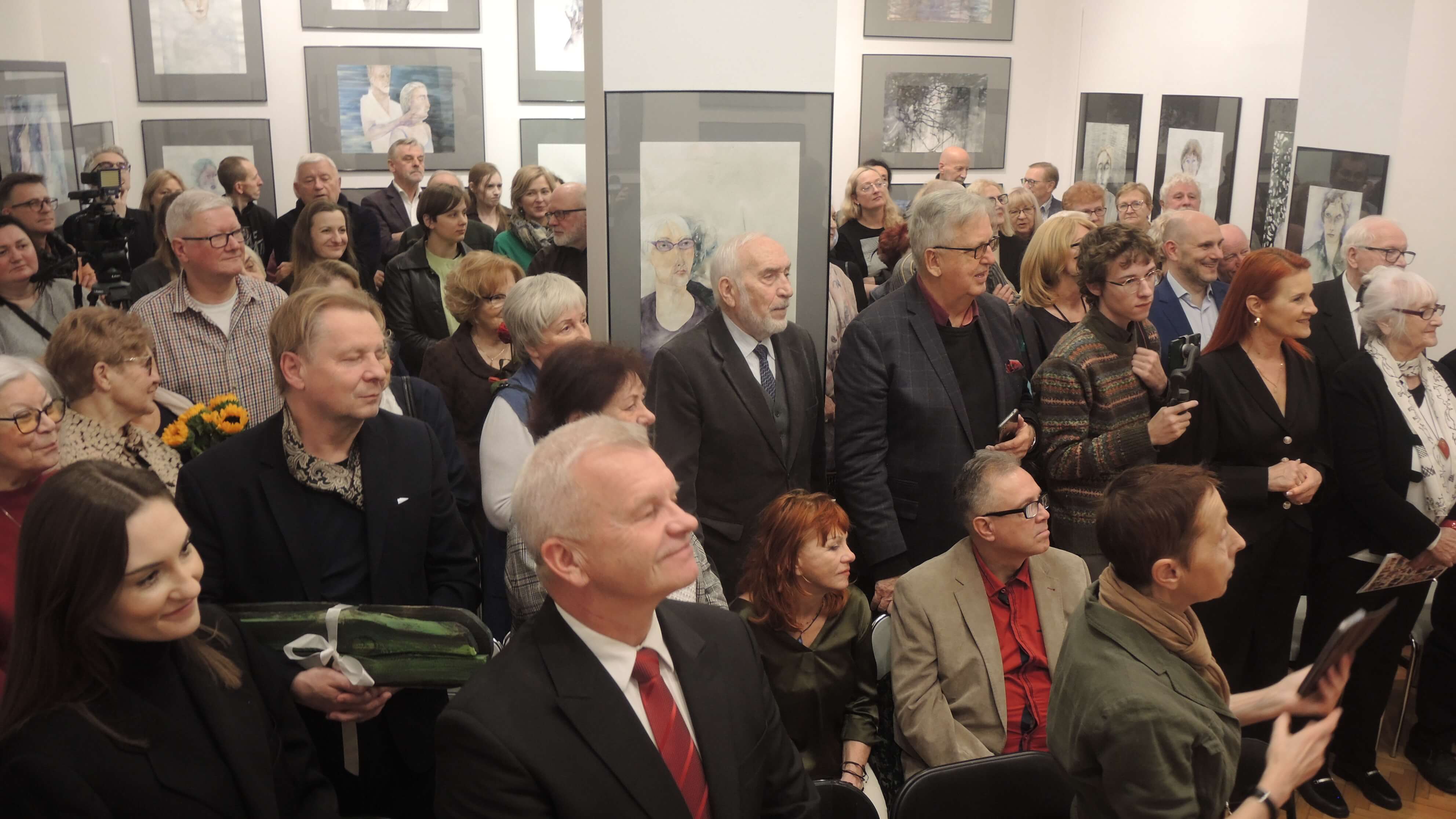 100 metrów powierzchni wystawienniczej dwóch sal przy ul. Długiej 13 szczelnie wypełnili goście, a ci, dla których nie starczyło miejsca, stali także w części recepcyjnej, a nawet w korytarzu przed wejściem do galerii. Był także tort, odśpiewane chóralne "Sto lat", a Karolinie Skłodowskiej Minister Kultury i Dziedzictwa Narodowego przyznał Brązowy Medal "Zasłużony Kulturze - Gloria Artis".