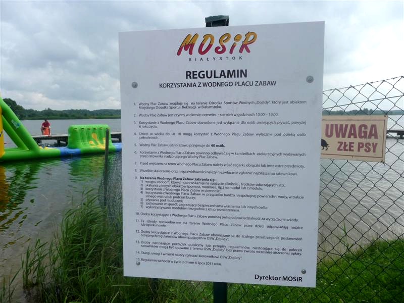 To jedyny tego typu plac zabaw na otwartej wodzie w naszym regionie. Składa się z kilku połączonych ze sobą elementów, m.in. z trampoliny, huśtawki i zjeżdżalni.