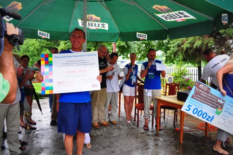 Trzecie miejsce zajęła ekipa Agaty Antonowicz z Legnicy, która za pływadło "Płukacz złota i jego złotko" dostała 5 tysięcy złotych. Nagroda dla najoryginalniejszego obiektu pływającego z województwa podlaskiego przypadła Ireneuszowi Tracieckiemu za konstrukcję "Kara w zawieszeniu". Nagroda to tysiąc złotych - tak, jak i za najlepszą prezentację obiektu pływającego, za co w tym roku uznano pływadło Radia Łódź, które urządziło radiowe studio na wodzie. (ew/kjs)