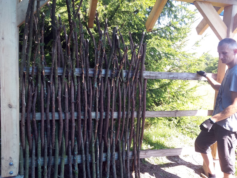 Tradycyjny płot z gałęzi świerku powstał w czwartek (25.08) w altanie, podczas warsztatów nad jeziorem Hańcza. Wkrótce, przy kwaterach agroturystycznych na Suwalszczyźnie powstaną kolejne, na wzór tych, jakie kiedyś wykonywali mieszkańcy suwalskich wsi.