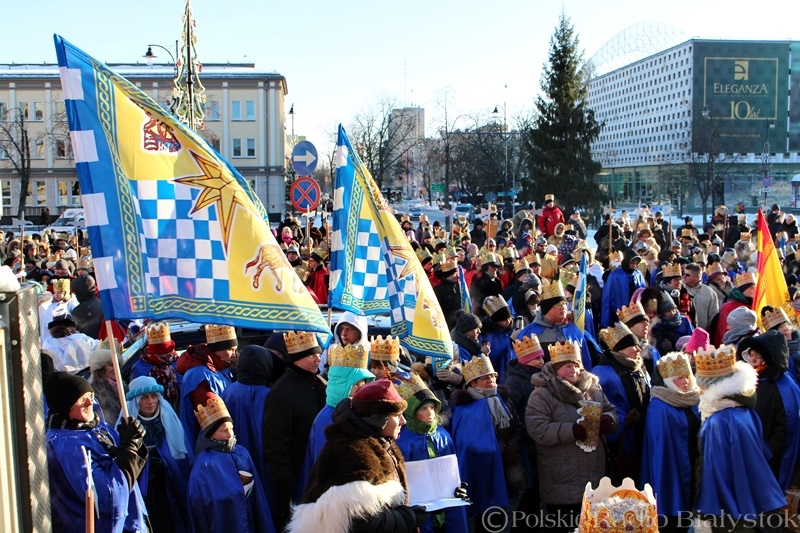 Mimo siarczystego mrozu białostoczanie nie zawiedli i tłumnie uczestniczyli w Orszaku trzech Króli. Mieszkańcy wspólnie świętowali uroczystość Objawienia Pańskiego już po raz piąty. Królowie Europy, Azji i Afryki wraz z barwnym orszakiem wyruszyli w południe z placu przed Pałacem Branickich w Białymstoku. Po modlitwie "Anioł Pański" dotarli do Gospody na Placu Św. Jana Pawła II. Tam przypomnieli sobie, jak zabrakło miejsca dla Świętej Rodziny, by mogła znaleźć schronienie. Przy kinie Forum orszak spotkał Aniołów zwiastujących pasterzom narodzenie Chrystusa, a potem była jeszcze jedna stacja - dworu Heroda na Placu Uniwersyteckim. Orszak zakończył wędrówkę na Rynku Kościuszki.
