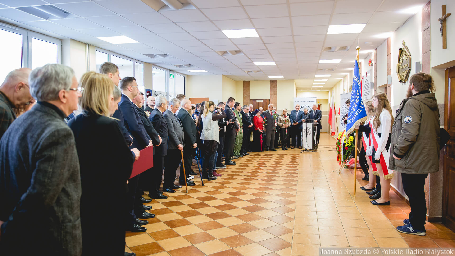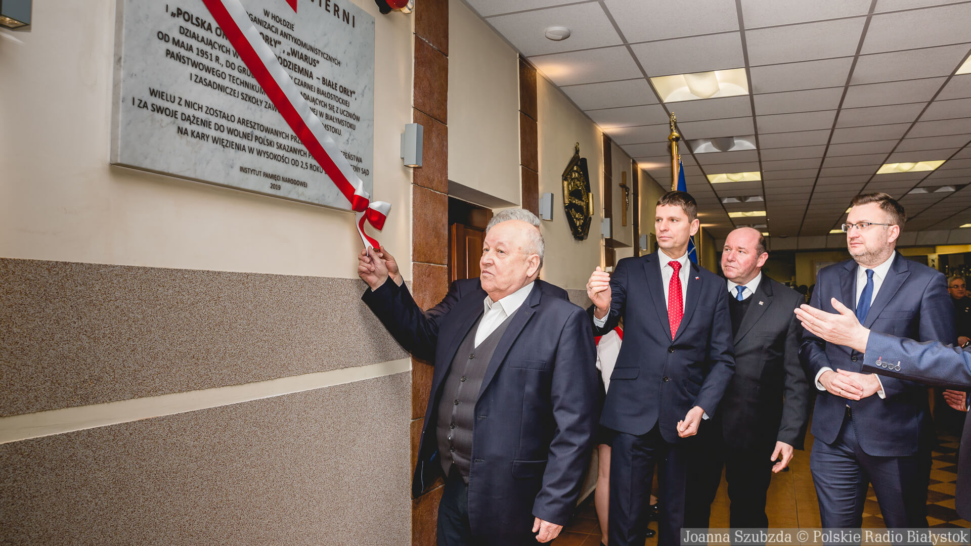 W uroczystości w Białymstoku wzięli udział m.in. przedstawiciele władz państwowych i samorządowych, grupa byłych członków młodzieżowych organizacji konspiracyjnych, służby mundurowe, młodzież i nauczyciele Zespołu Szkół Ogólnokształcących i Technicznych; w głównym holu tej szkoły odsłonięta została w piątek ta tablica.