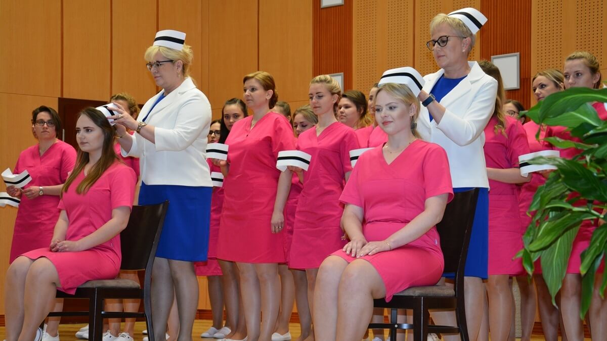 Prawie 30 studentów II roku pielęgniarstwa i położnictwa suwalskiej Państwowej Wyższej Szkoły Zawodowej otrzymało w czwartek (16.05) symboliczne czepki.