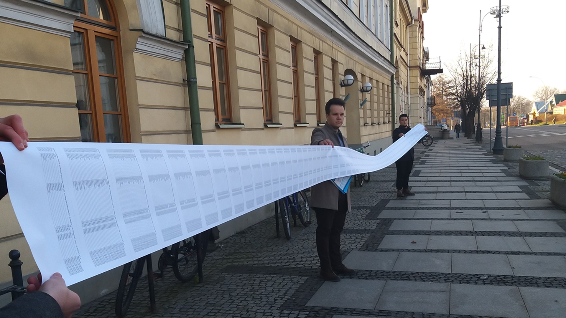 11-metrową wydrukowaną petycję organizatorzy akcji "Nie dla nowego herbu Suwałk" złożyli w urzędzie miasta.