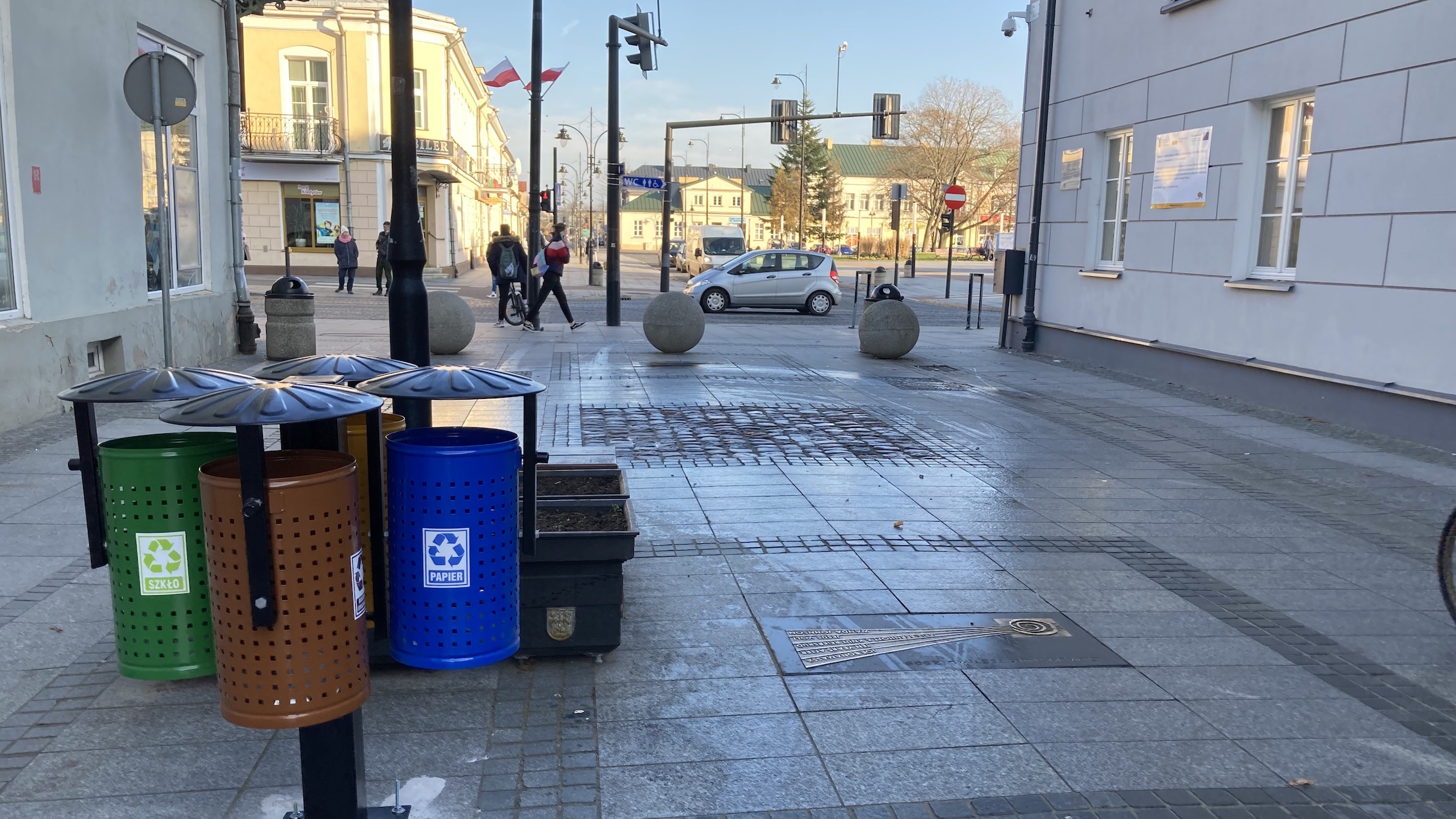 - Kosze do recyklingu to dobra sprawa. Mogłyby one jednak być bardziej z boku, a nie w samym centrum chodnika. Można jej umieścić obok istniejącego śmietnika, a nie na środku przejścia. Tak, aby nie zakrywały tablic.