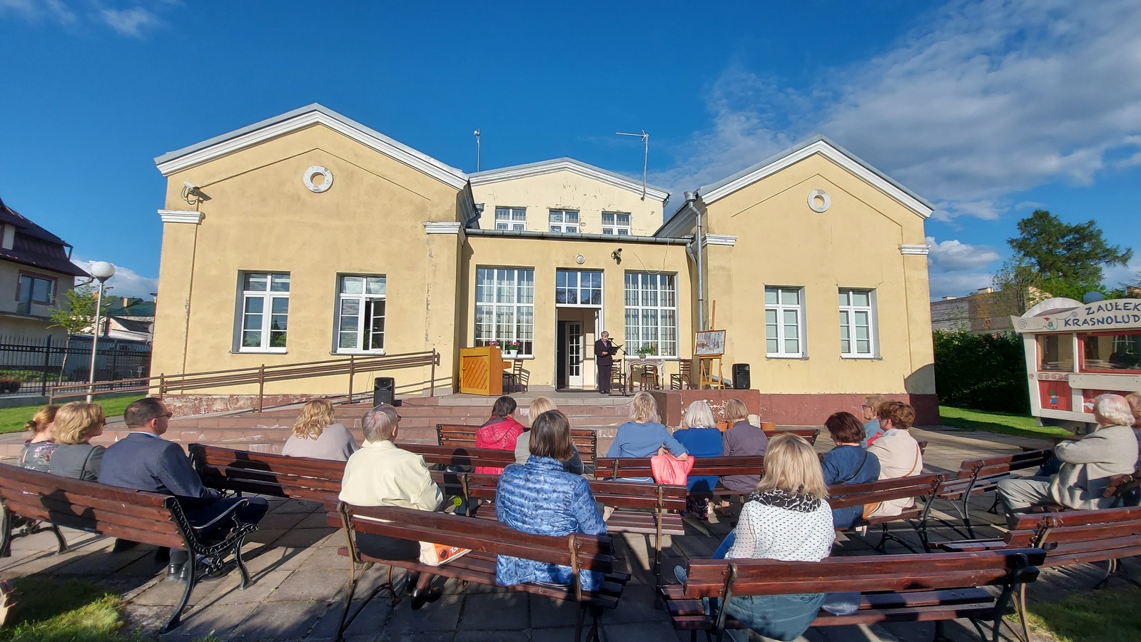 Przed pałacykiem w muzeum jej imienia aktorzy Teatru Amatorskiego Grupa Kłusowników - Straż Przednia zaprezentowali słowno- muzyczne przedstawienie, w którym pojawia się sławna suwalczanka.