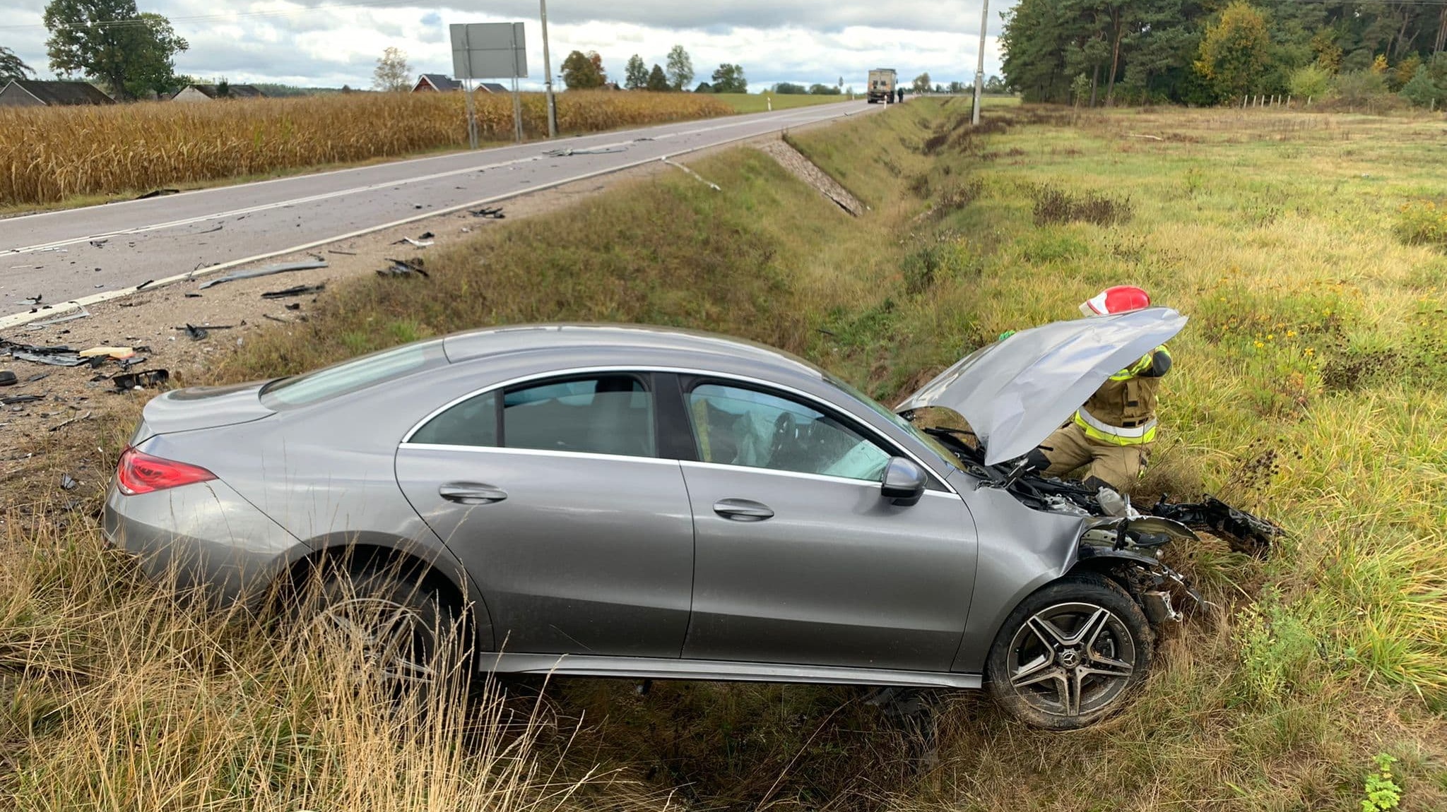 4.10.2022, 07:28Wczoraj (3.10) na skrzyżowaniu z drogą do Moczydeł osobowy mercedes zderzył się z samochodem ciężarowym.