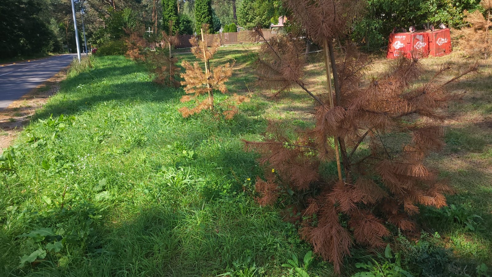 Firma robiła to już dwukrotnie. Ostatni raz bodajże w czerwcu. Wykonuje to oczywiście na swój koszt i powtórzy tę czynność jeszcze jesienią. Jest to dziwna sytuacja, bo tam są bardzo dobre warunki dla sosen. Rośnie ich wiele w dużych rozmiarów. Nie wiem, dlaczego z młodymi jest inaczej. Zresztą sadzonki liściastych drzew się przyjęły i żyją. Najgorzej jest z iglakami.